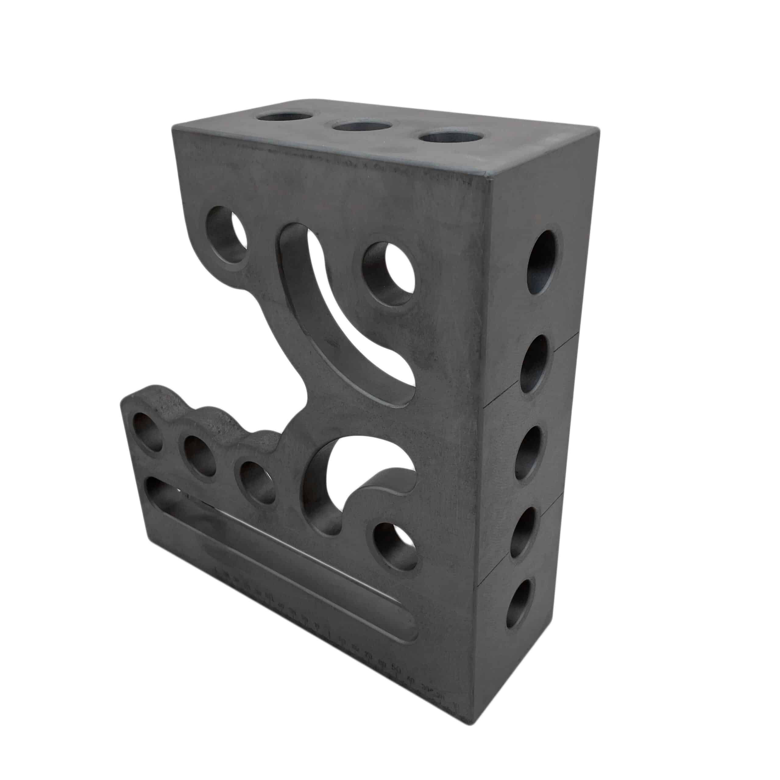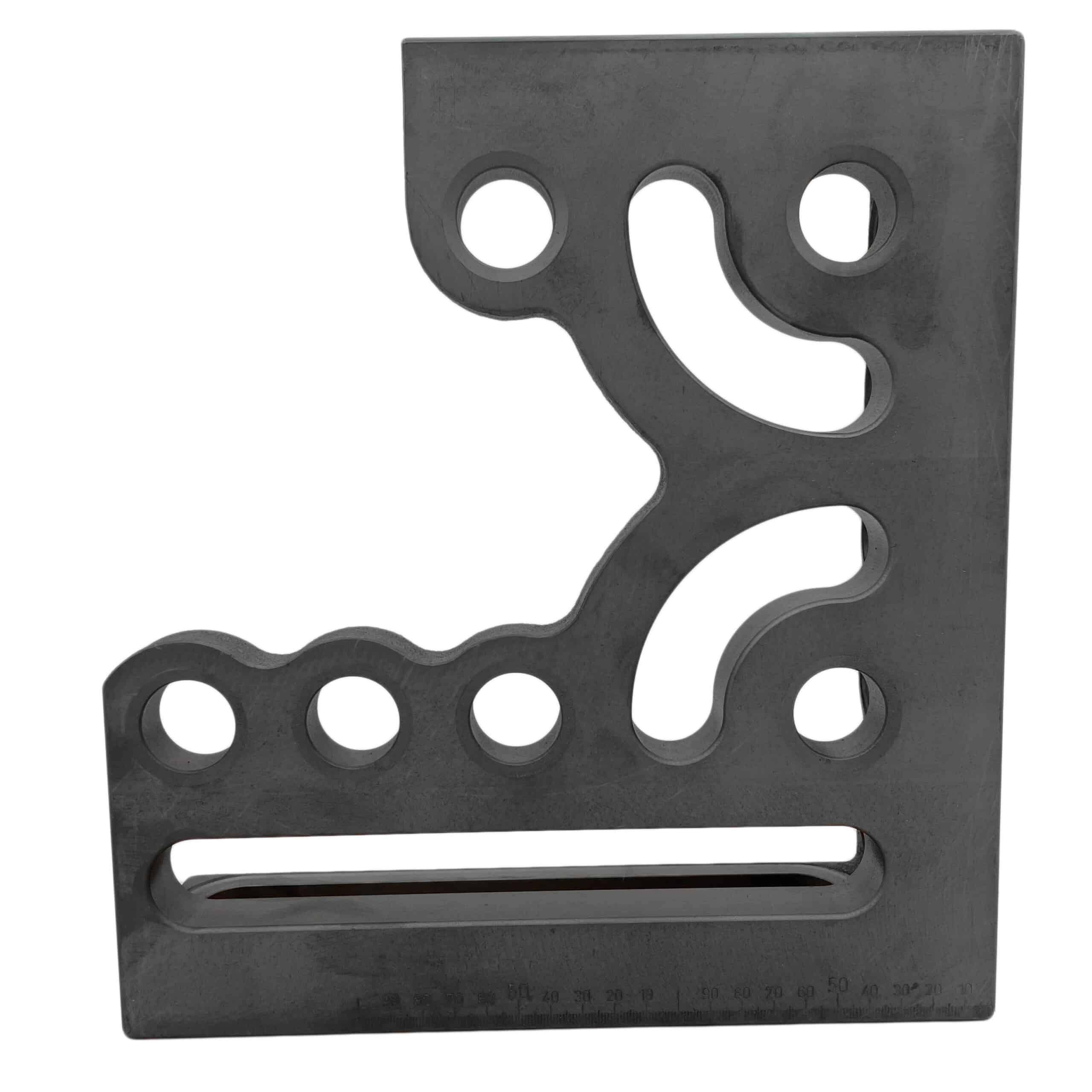 The Clamping & Locating Angle – 300mm Premium (LH) is designed for maximum versatility with three stop faces and clamping sides equipped with system bores and oblong holes, enabling numerous application possibilities. It features two kidney-shaped grooves that significantly extend its use cases, making it ideal as a stop, table expansion, or to secure angled workpieces at 90°. Grid lines and 1mm precision scaling ensure maximum accuracy in clamping. Hardened for ultimate durability, this premium angle is built to provide reliable performance and withstand rigorous conditions.