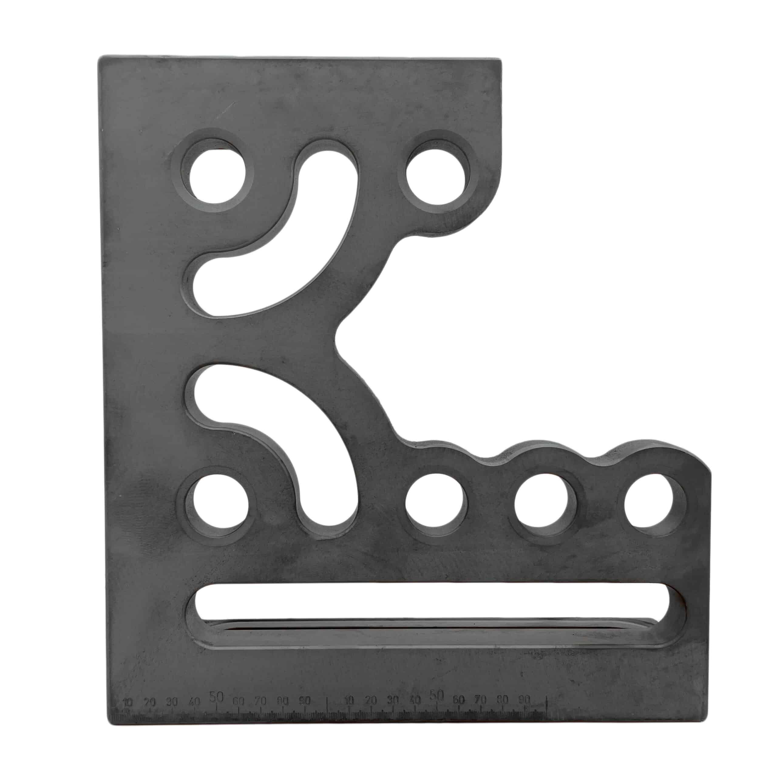 The Clamping & Locating Angle – 300mm Premium (RH) is designed for maximum versatility with three stop faces and clamping sides equipped with system bores and oblong holes, enabling numerous application possibilities. It features two kidney-shaped grooves that significantly extend its use cases, making it ideal as a stop, table expansion, or to secure angled workpieces at 90°. Grid lines and 1mm precision scaling ensure maximum accuracy in clamping. Hardened for ultimate durability, this premium angle is built to provide reliable performance and withstand rigorous conditions.