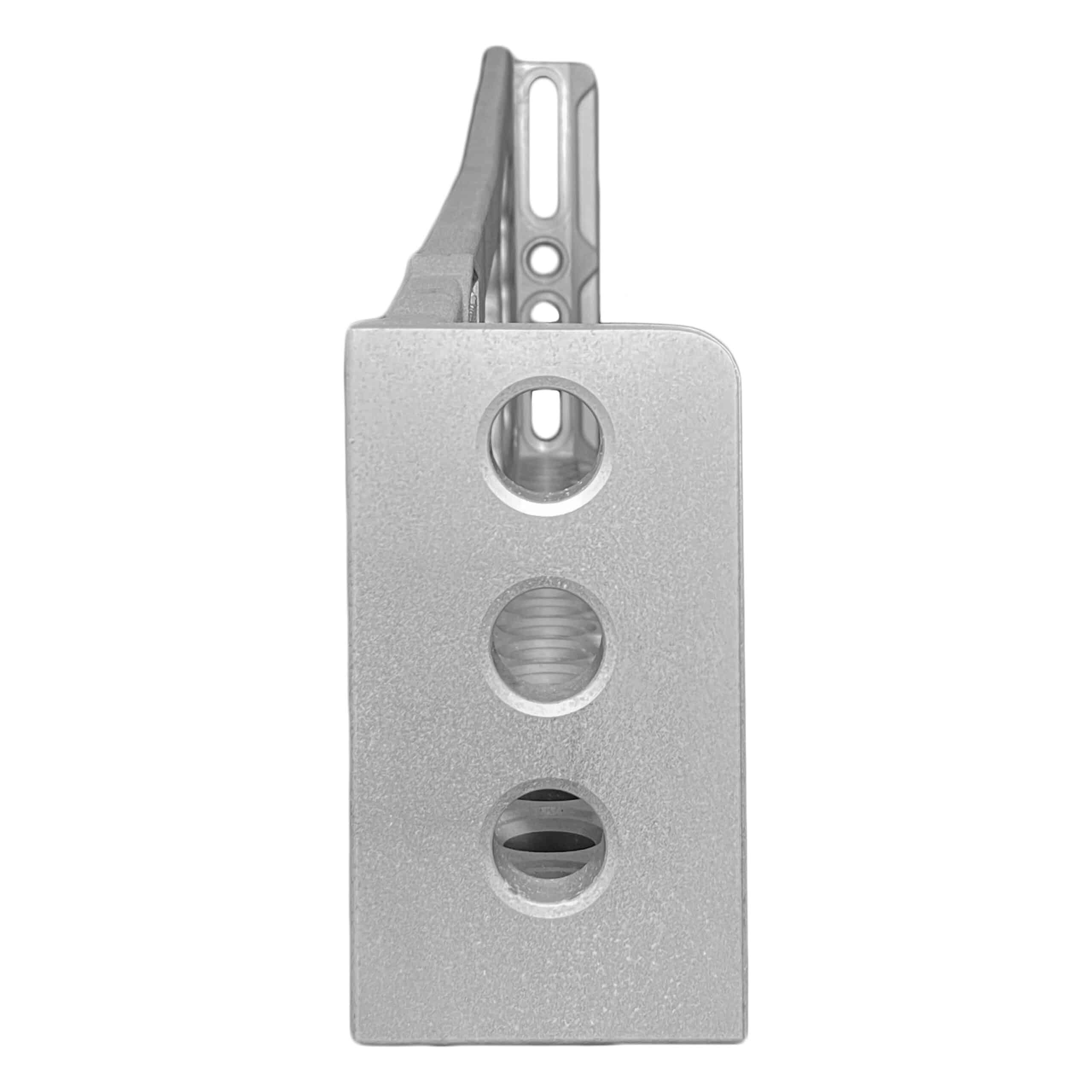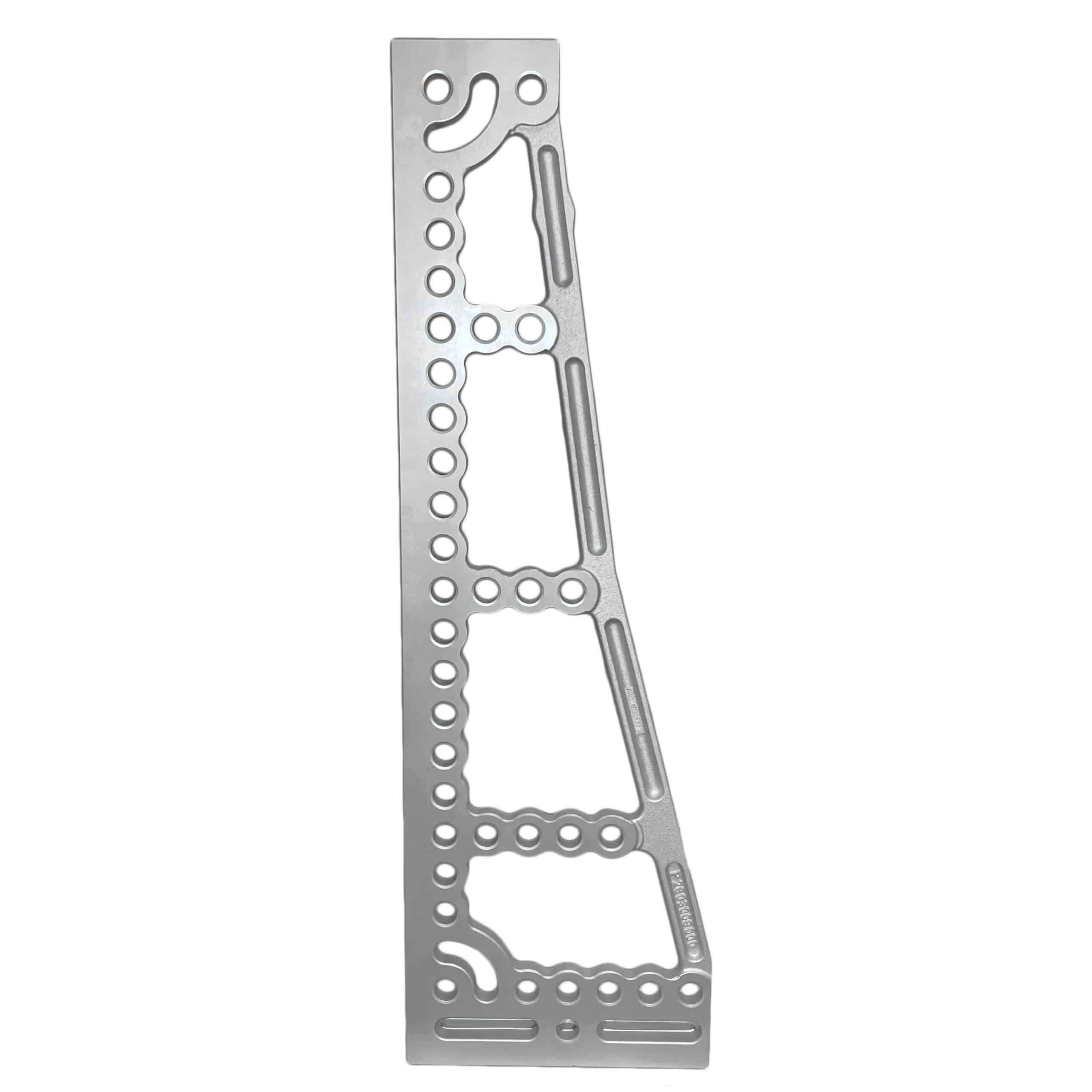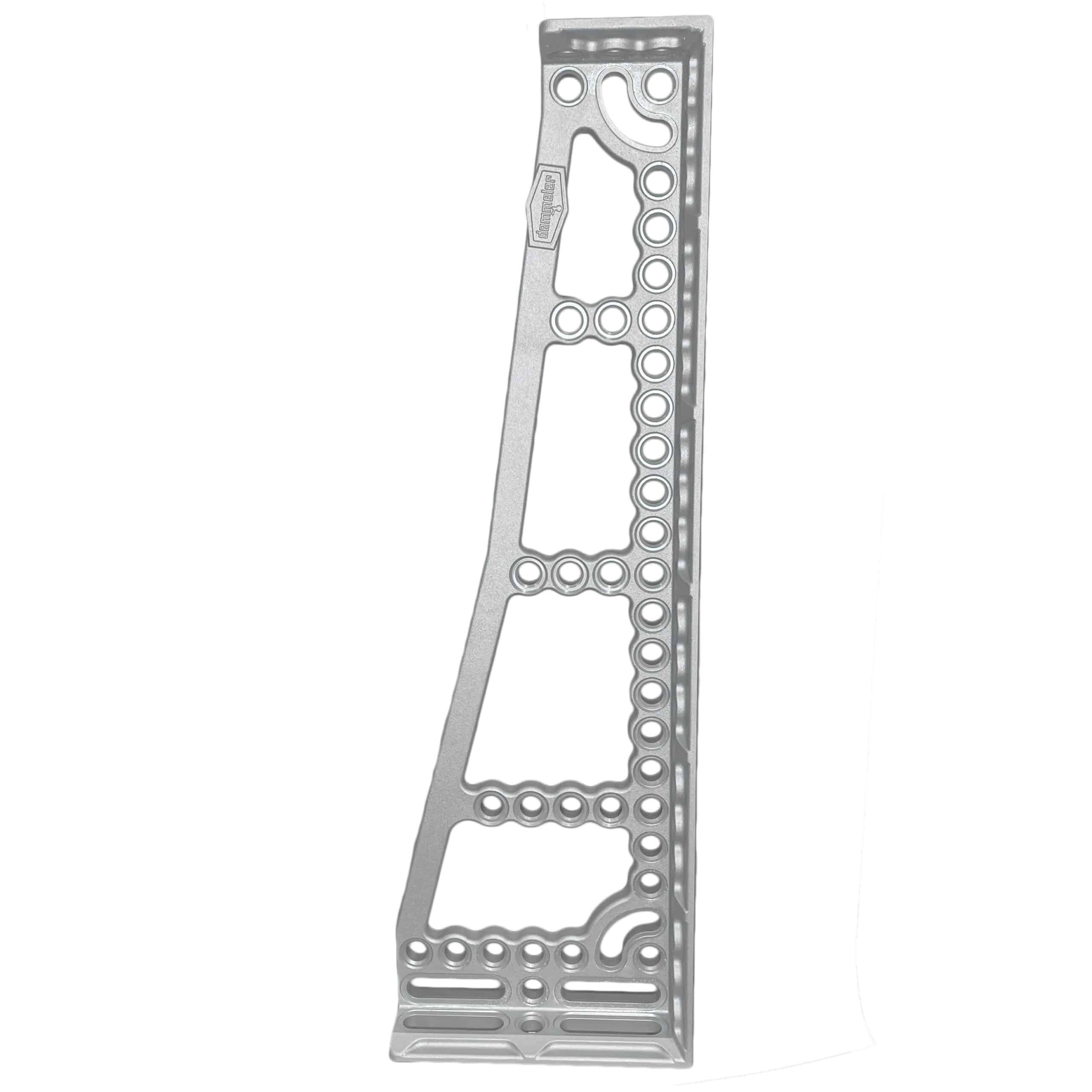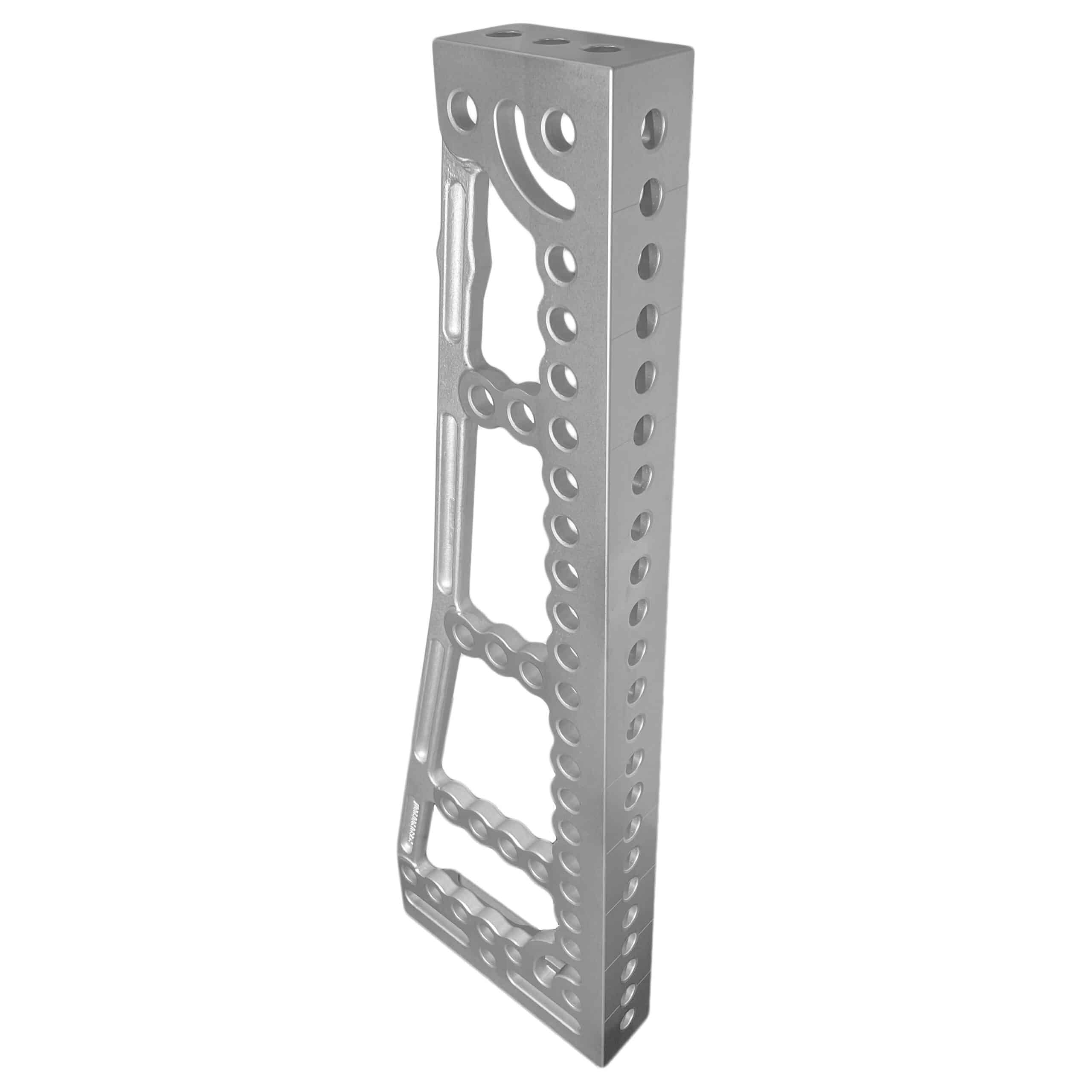 The Clamping & Locating Angle A/T – 1200mm (LH) is engineered for maximum versatility with its four stop faces and clamping sides, featuring system bores and oblong holes. This angle includes two kidney-shaped grooves and cross braces with multiple bores, significantly expanding its application possibilities. It can serve as a stop, for table expansion, or to securely hold workpieces at a 90° angle. Precision is achieved with grid lines and 1mm scaling, while the anodised aluminium titanium construction ensures enhanced durability and a lightweight design. This angle provides robust performance and flexibility for various applications.