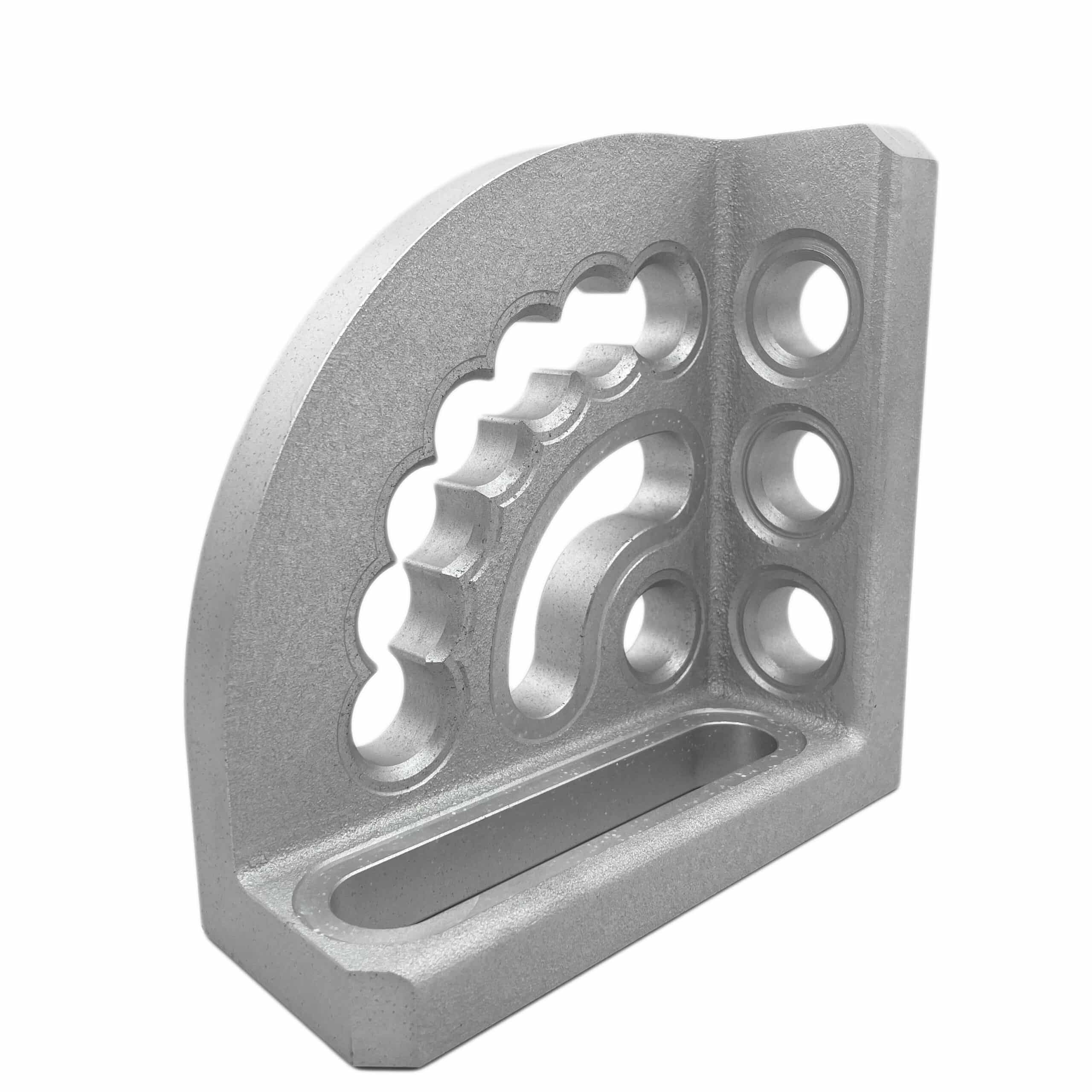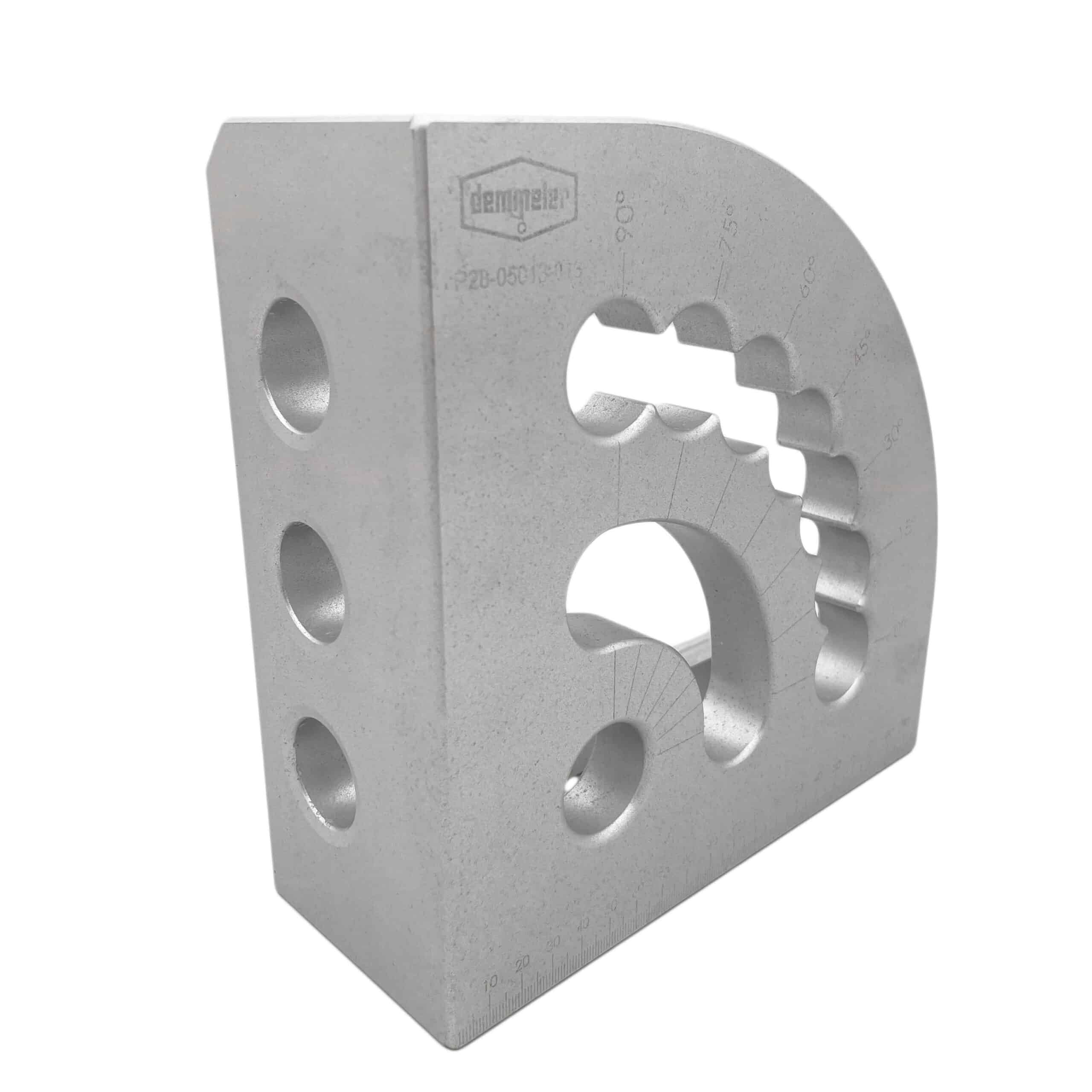The Clamping & Locating Angle A/T – 200mm (RH) offers exceptional versatility with its three clamping sides, each featuring system bores and oblong holes. This angle is ideal for use as a stop or for clamping angled parts. It allows for continuous angle adjustment via an oblong hole, with set increments of 15° or a 90° stop for precise positioning. The 1mm precision scaling ensures accurate measurements, while the anodised aluminium titanium construction enhances durability and provides a lightweight, robust design for various applications.