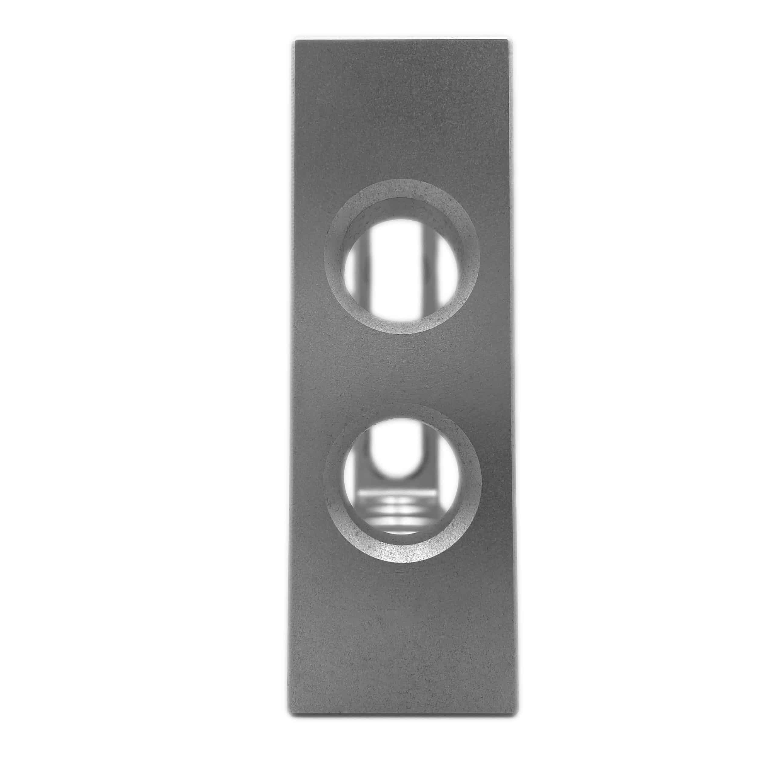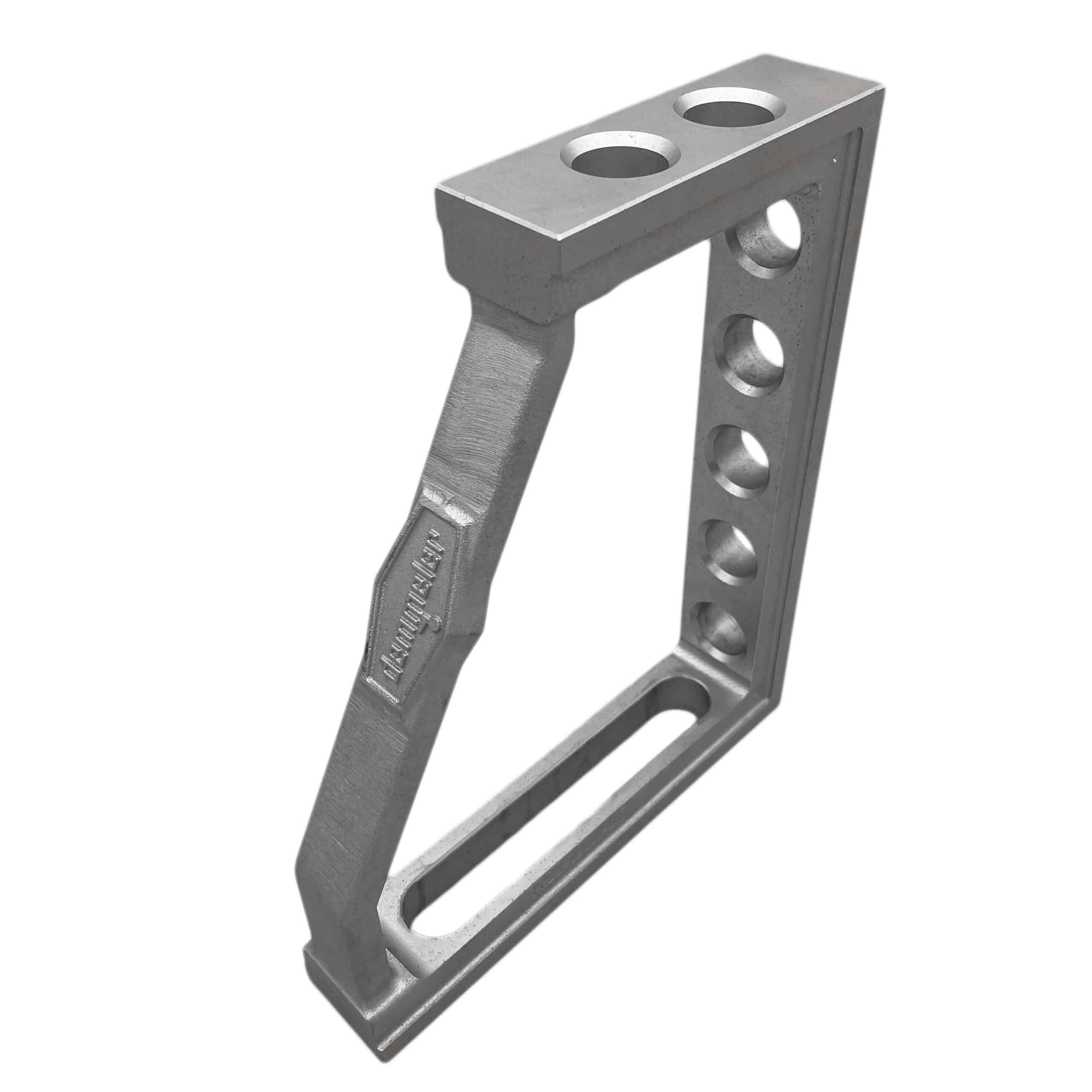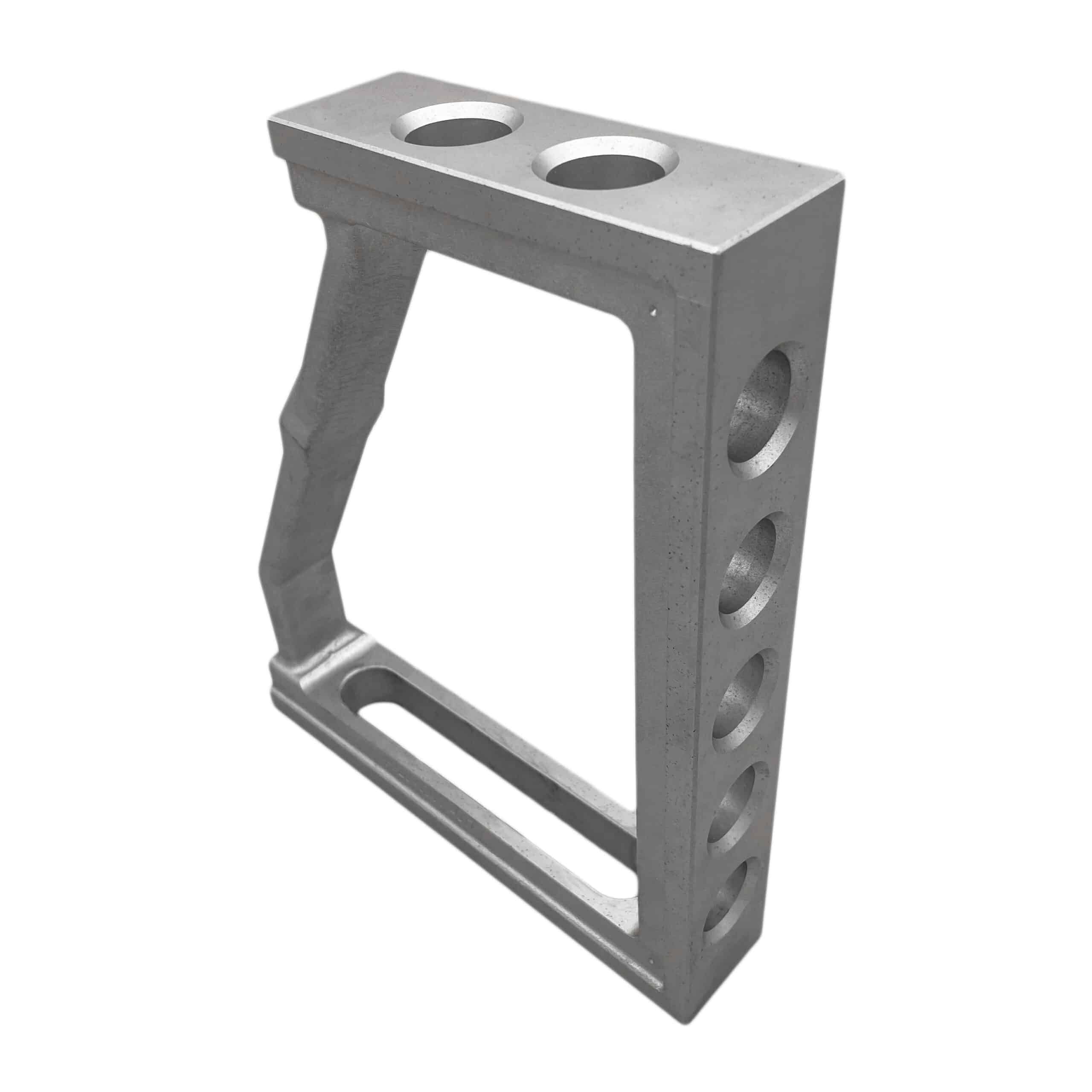 The Clamping & Locating Angle A/T – 250mm is designed for continuous adjustment on 3D worktables and system components, offering exceptional versatility. It features a combination of system bores and an oblong hole, allowing for numerous application possibilities. The extended face plate includes two additional bores, enhancing its functionality. With 1mm precision scaling on both sides, it ensures accurate measurements and positioning. The anodised aluminium titanium construction provides enhanced durability and a lightweight, robust design, making it ideal for various clamping and locating tasks.