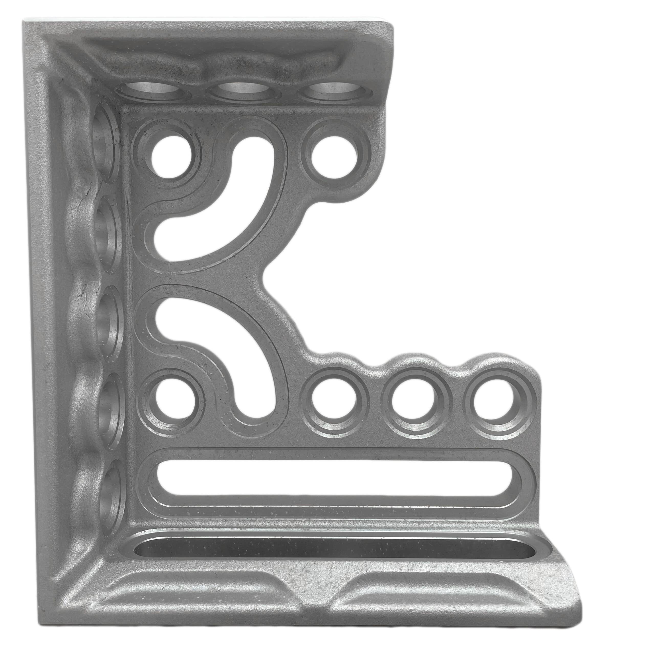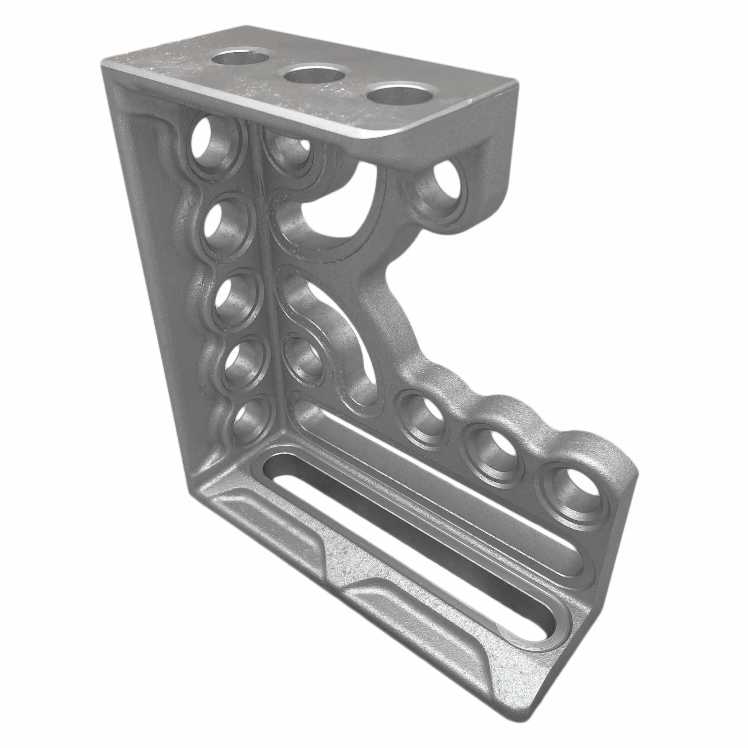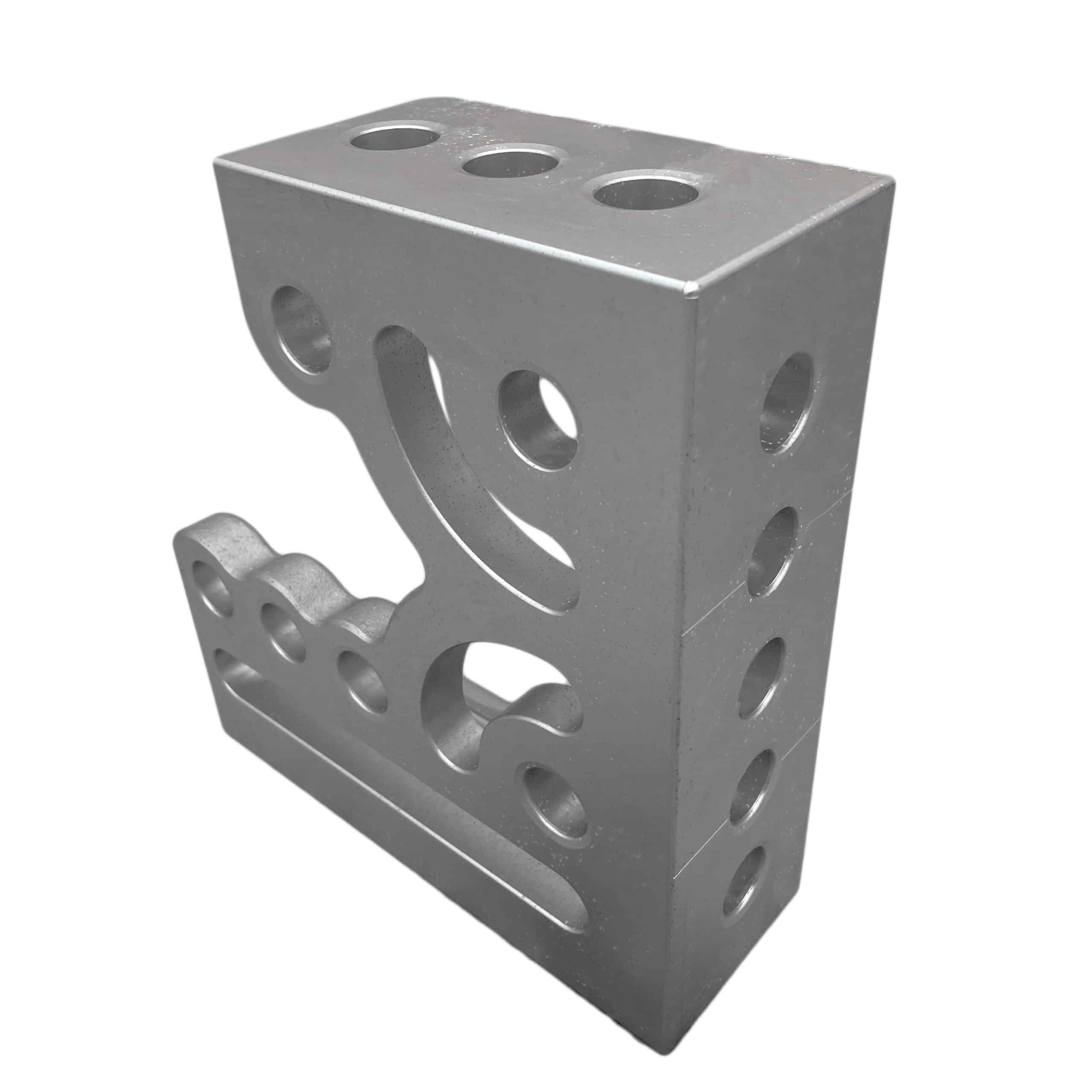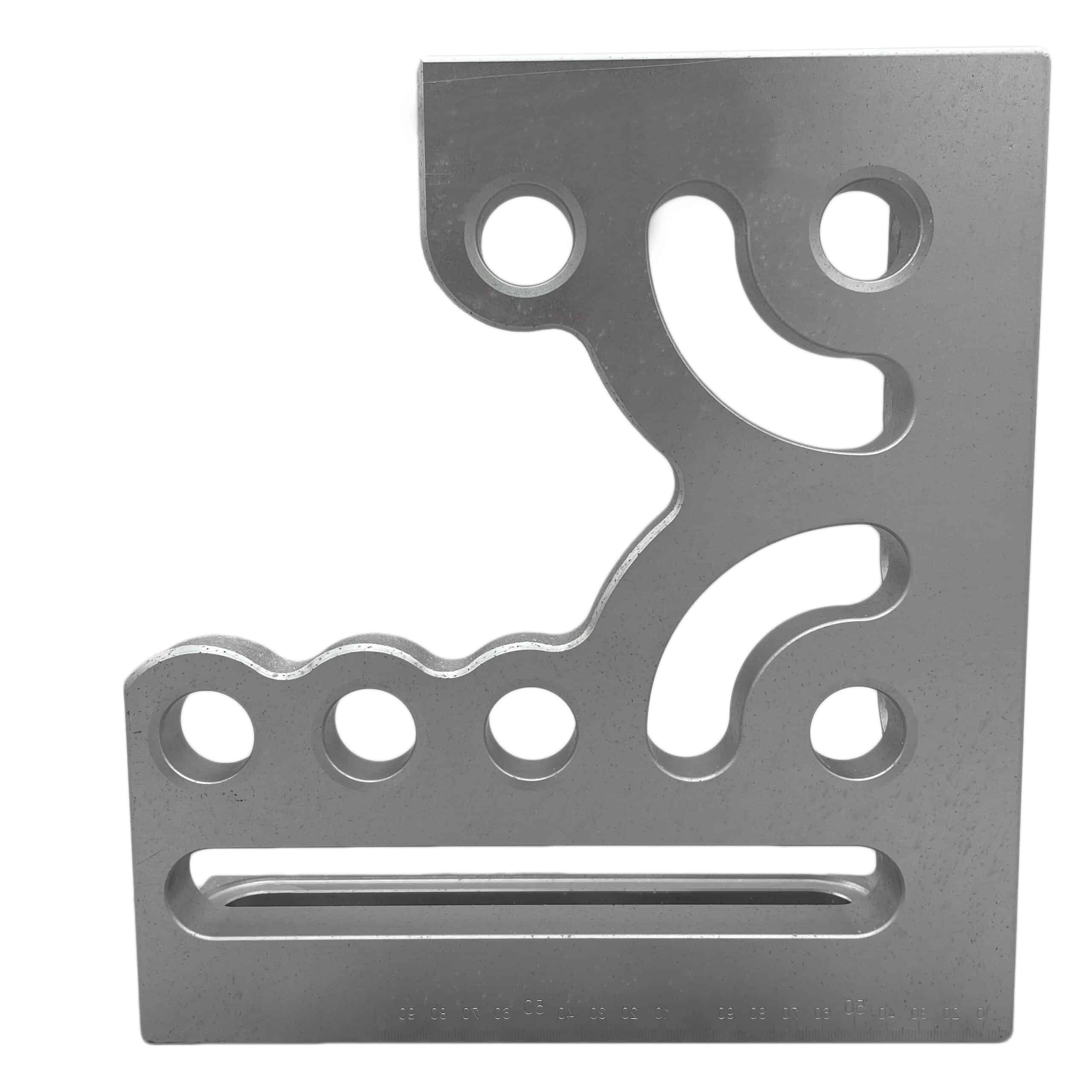 The Clamping & Locating Angle A/T – 300mm (LH) combines the strength of aluminium and titanium for superior durability while being significantly lighter than hardened steel angles. It features three stop faces and clamping sides with system bores and oblong holes, offering extensive application possibilities. Two kidney-shaped grooves further enhance versatility. This angle can be used as a stop, for table expansion, or to secure workpieces at a 90° angle. Grid lines and 1mm precision scaling ensure maximum accuracy, and the anodised finish provides enhanced durability and wear resistance.