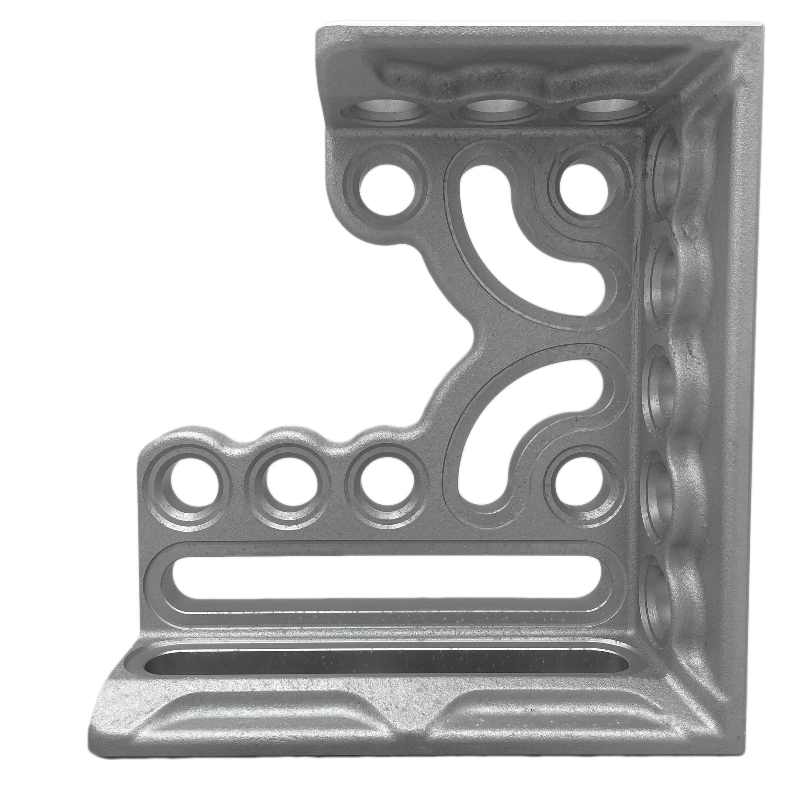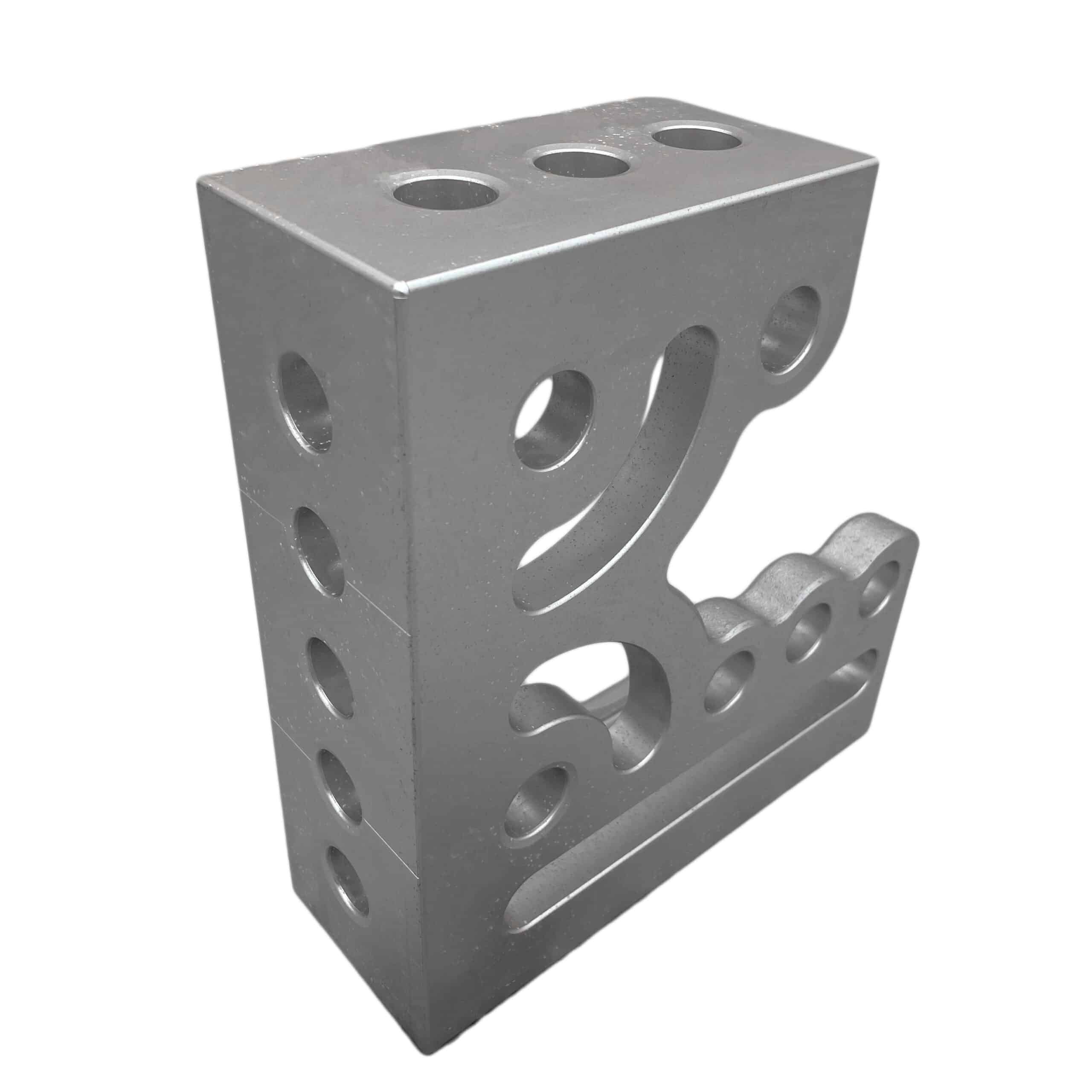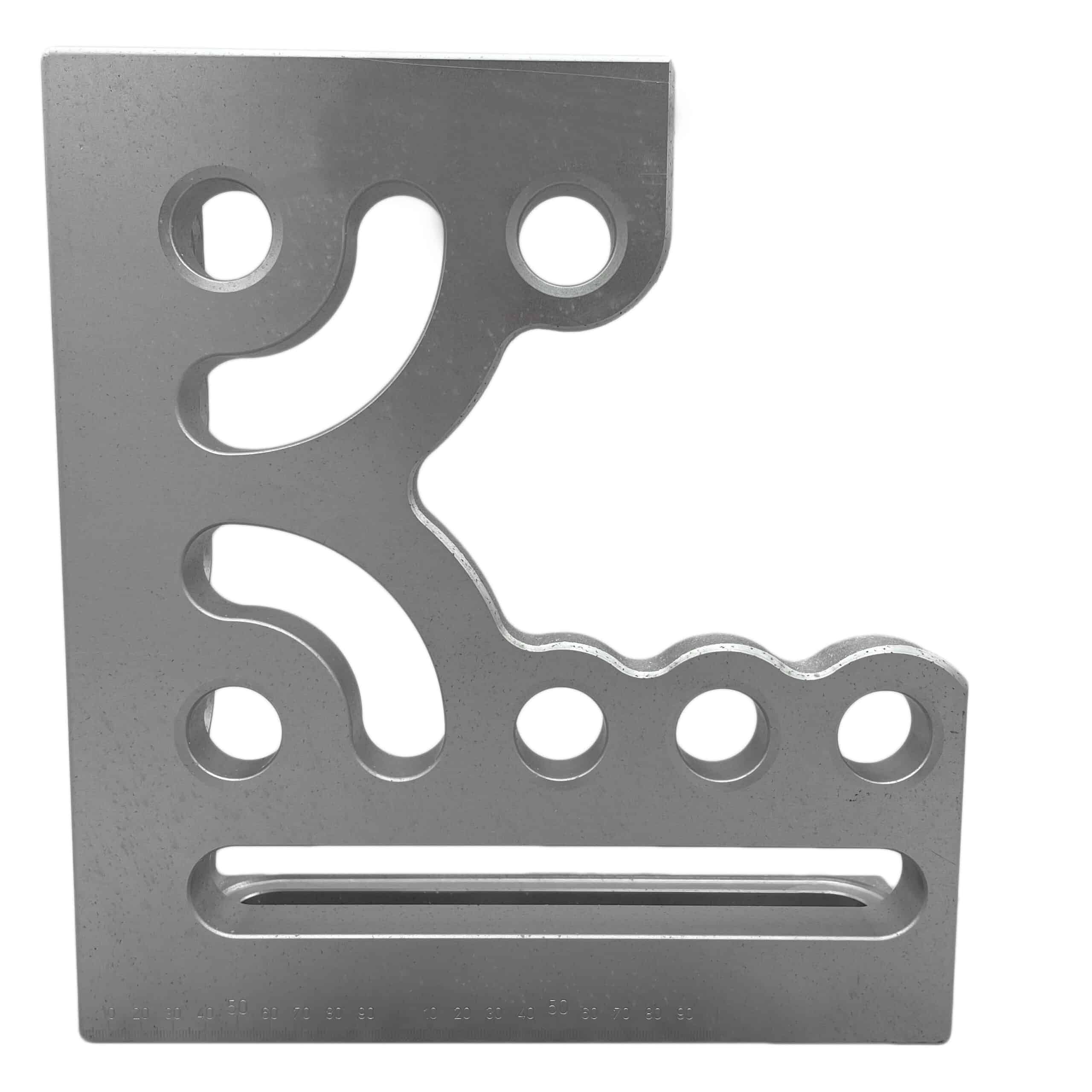 The Clamping & Locating Angle A/T – 300mm (RH) combines the strength of aluminium and titanium for superior durability while being significantly lighter than hardened steel angles. It features three stop faces and clamping sides with system bores and oblong holes, offering extensive application possibilities. Two kidney-shaped grooves further enhance versatility. This angle can be used as a stop, for table expansion, or to secure workpieces at a 90° angle. Grid lines and 1mm precision scaling ensure maximum accuracy, and the anodised finish provides enhanced durability and wear resistance.