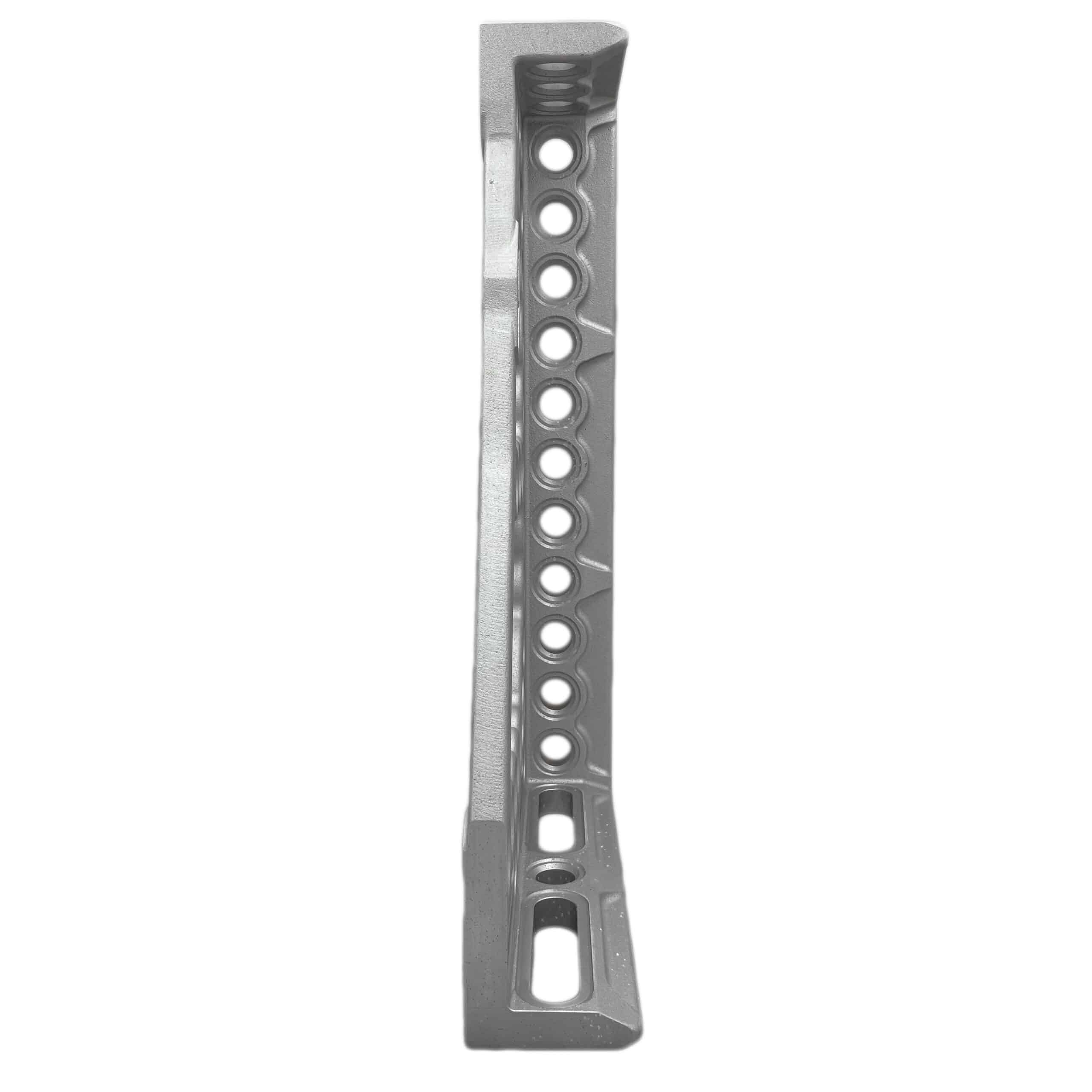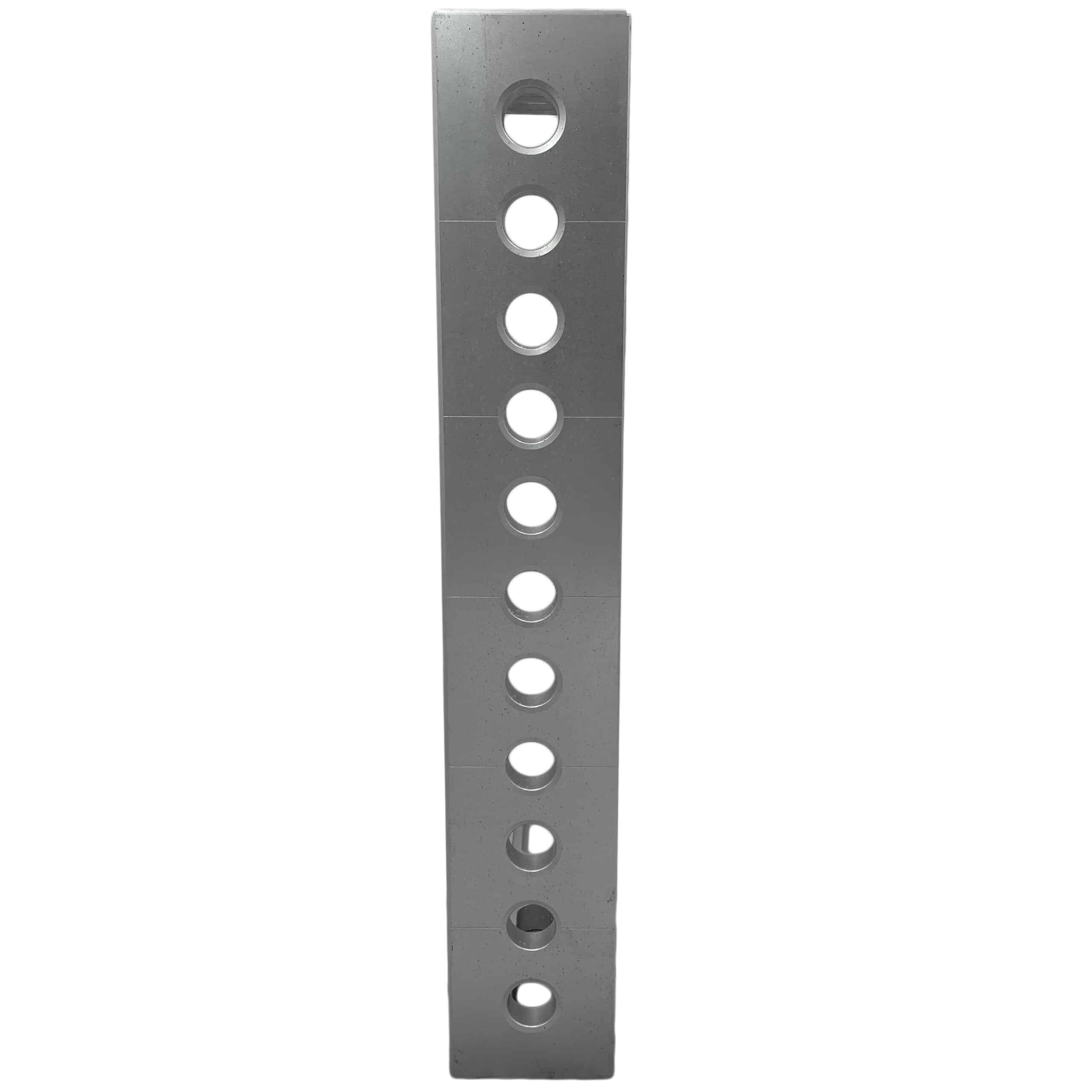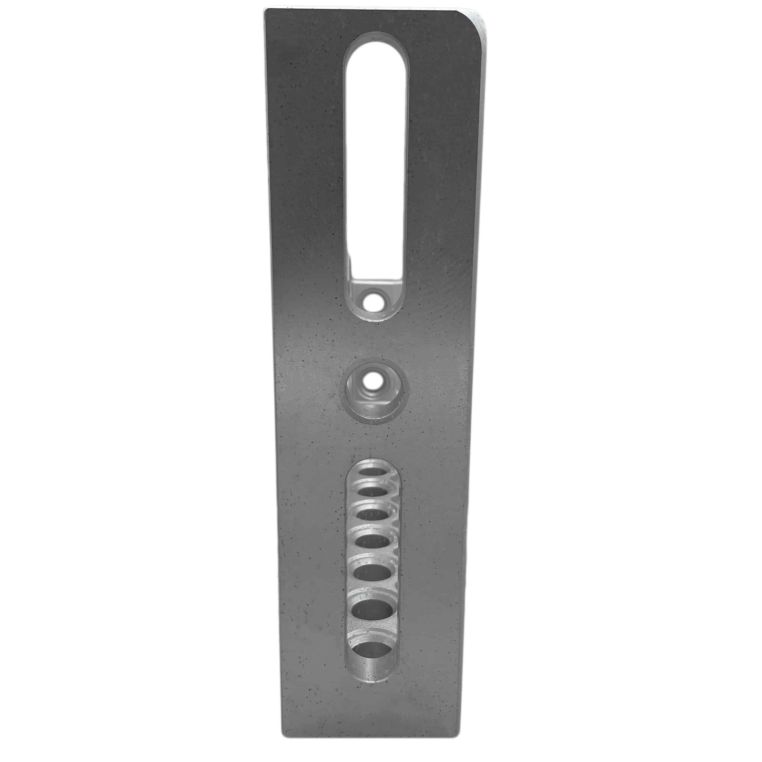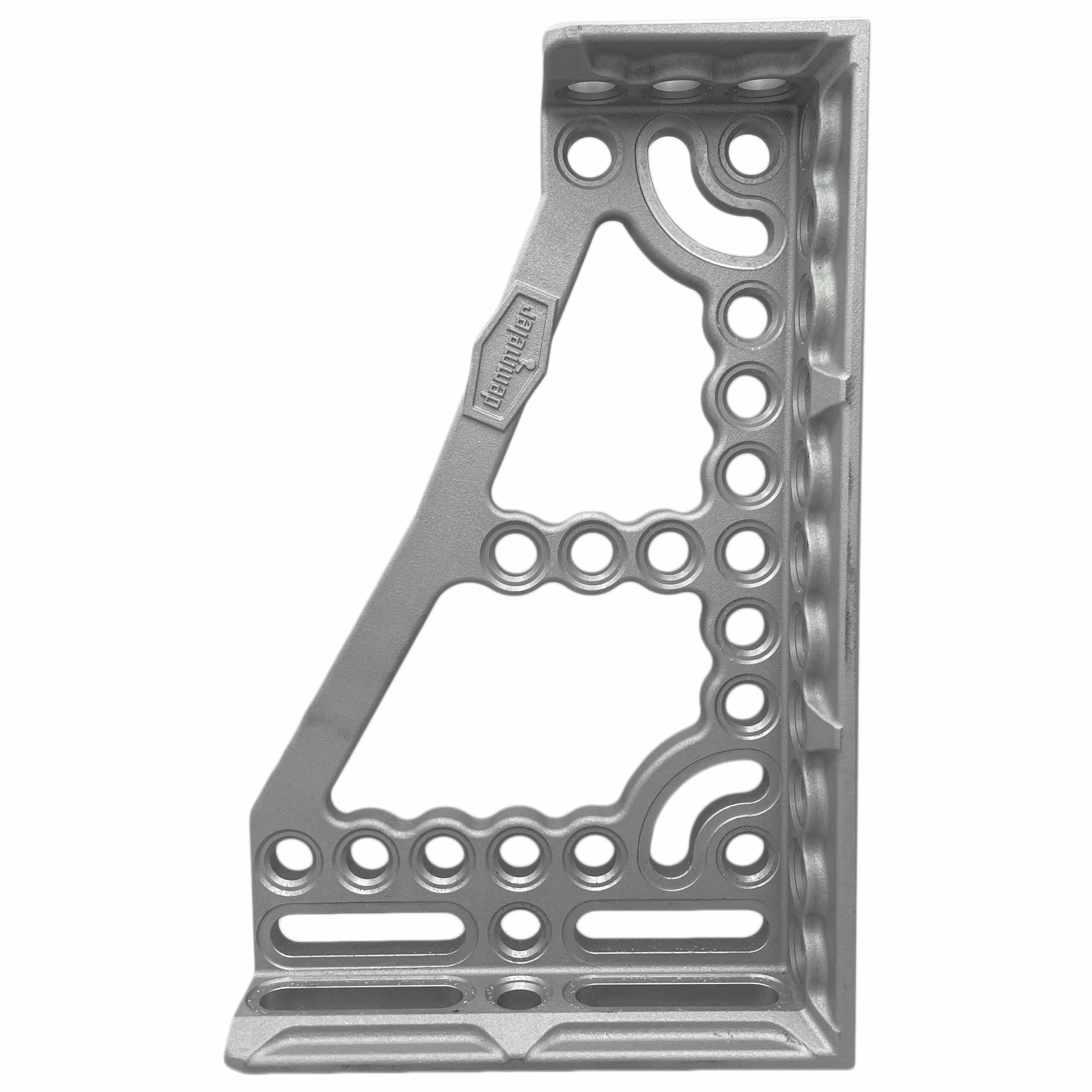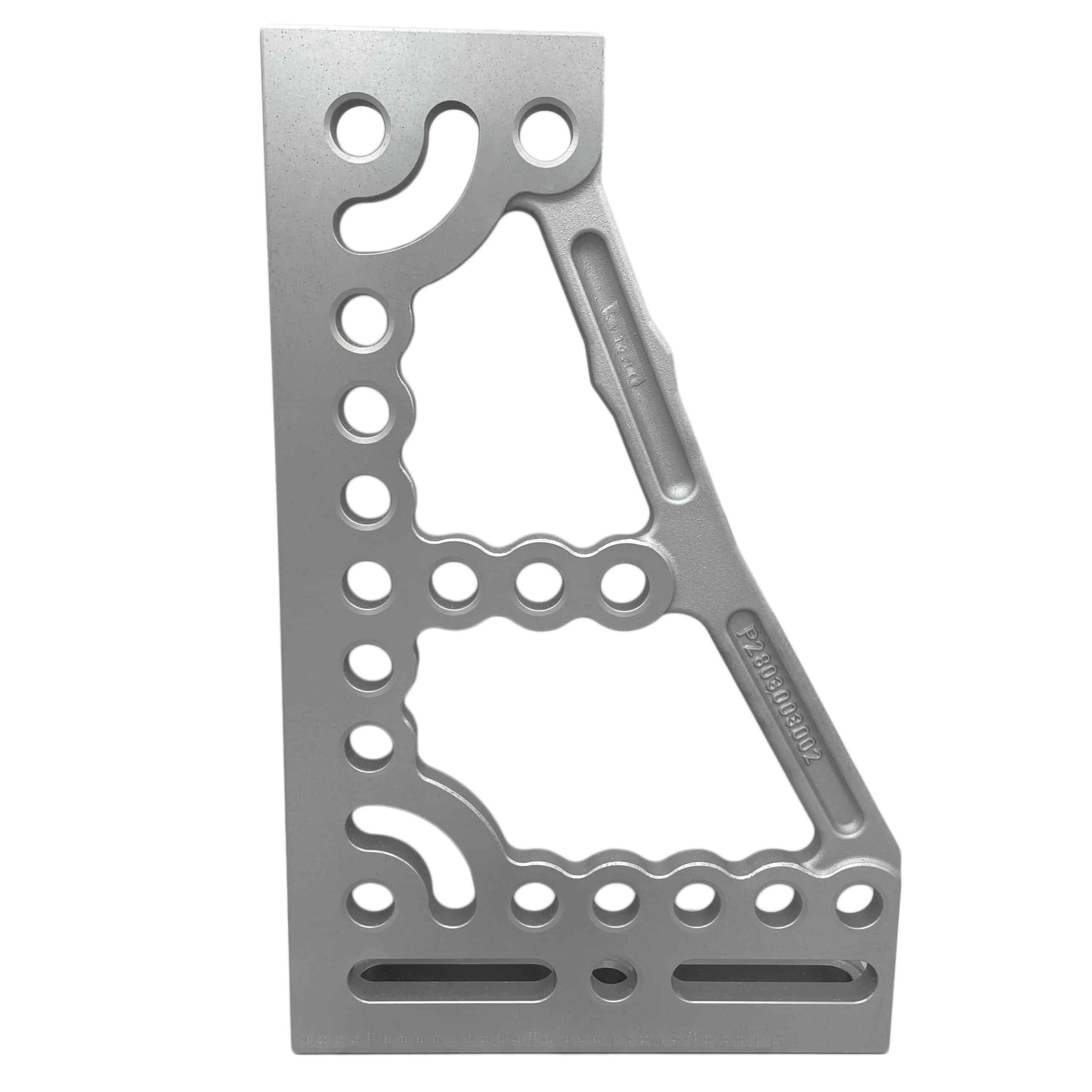 The Clamping & Locating Angle A/T – 600mm (RH) offers exceptional versatility with three stop faces and clamping sides featuring system bores and oblong holes. This angle is equipped with two kidney-shaped grooves and a cross brace with multiple bores, greatly expanding its application possibilities. It can be utilised as a stop, for table expansion, or to secure workpieces at a 90° angle. Precision is ensured with grid lines and 1mm scaling, while the anodised aluminium titanium construction provides enhanced durability and lightweight performance. This angle combines strength with reduced weight for efficient and reliable use in various applications.