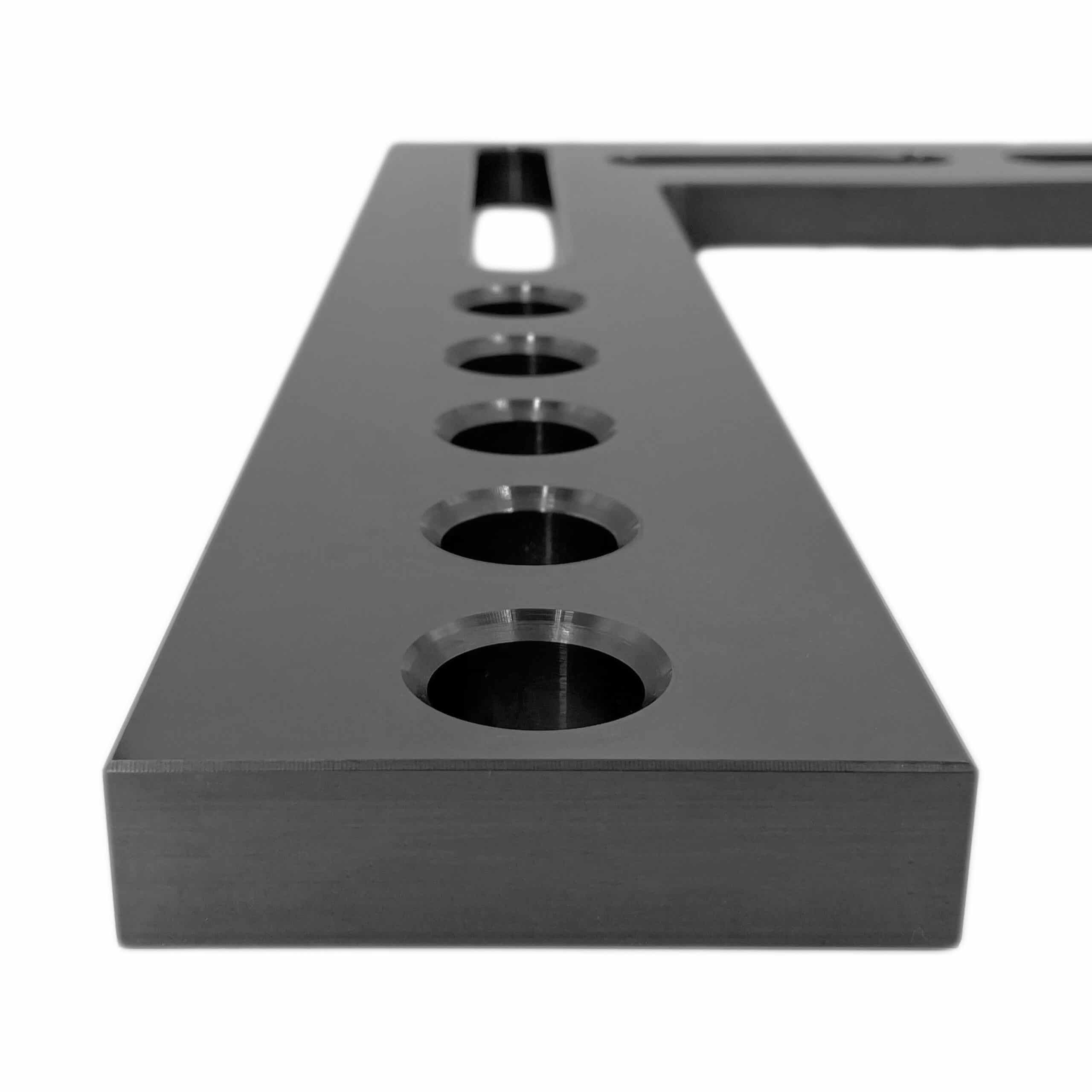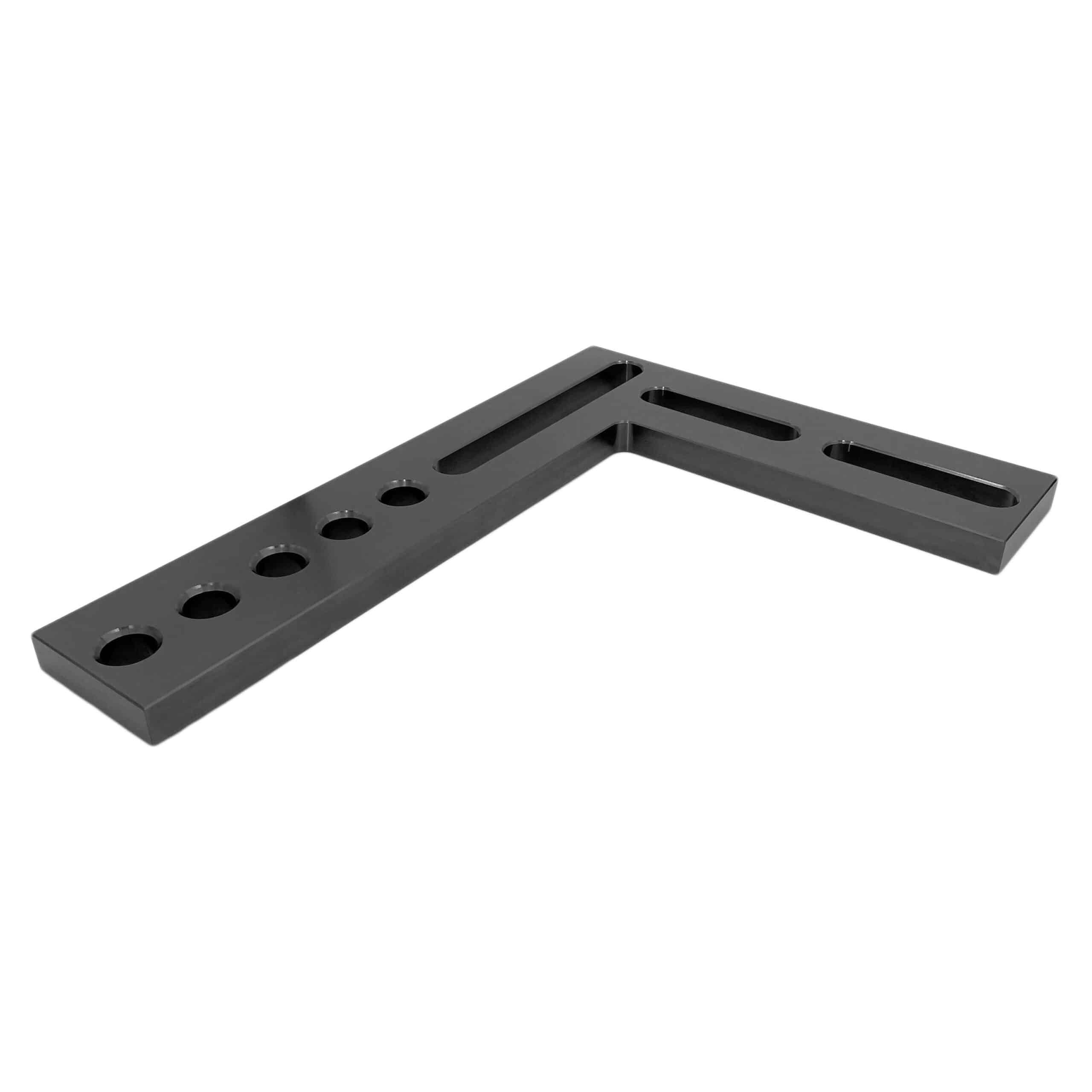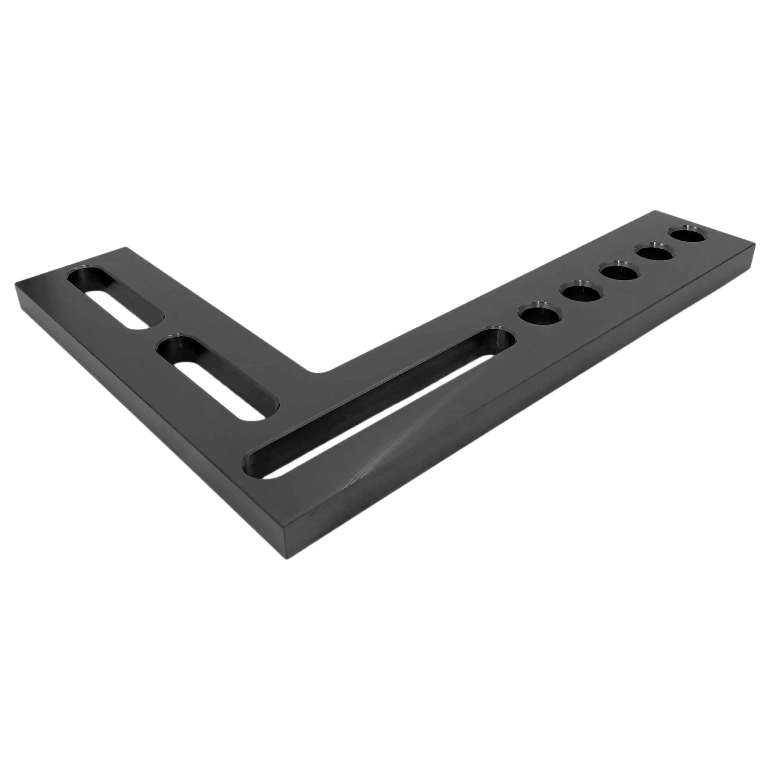 The Angle – Flat is designed for both fixed and continuously adjustable positioning on 3D worktables and system components. It features full locating surfaces on both the inside and outside, ensuring precise alignment. The combination of system bores and oblong holes enhances its versatility, accommodating a wide range of applications. Blackened for added durability, this component is built to withstand demanding conditions while providing reliable and adaptable support.