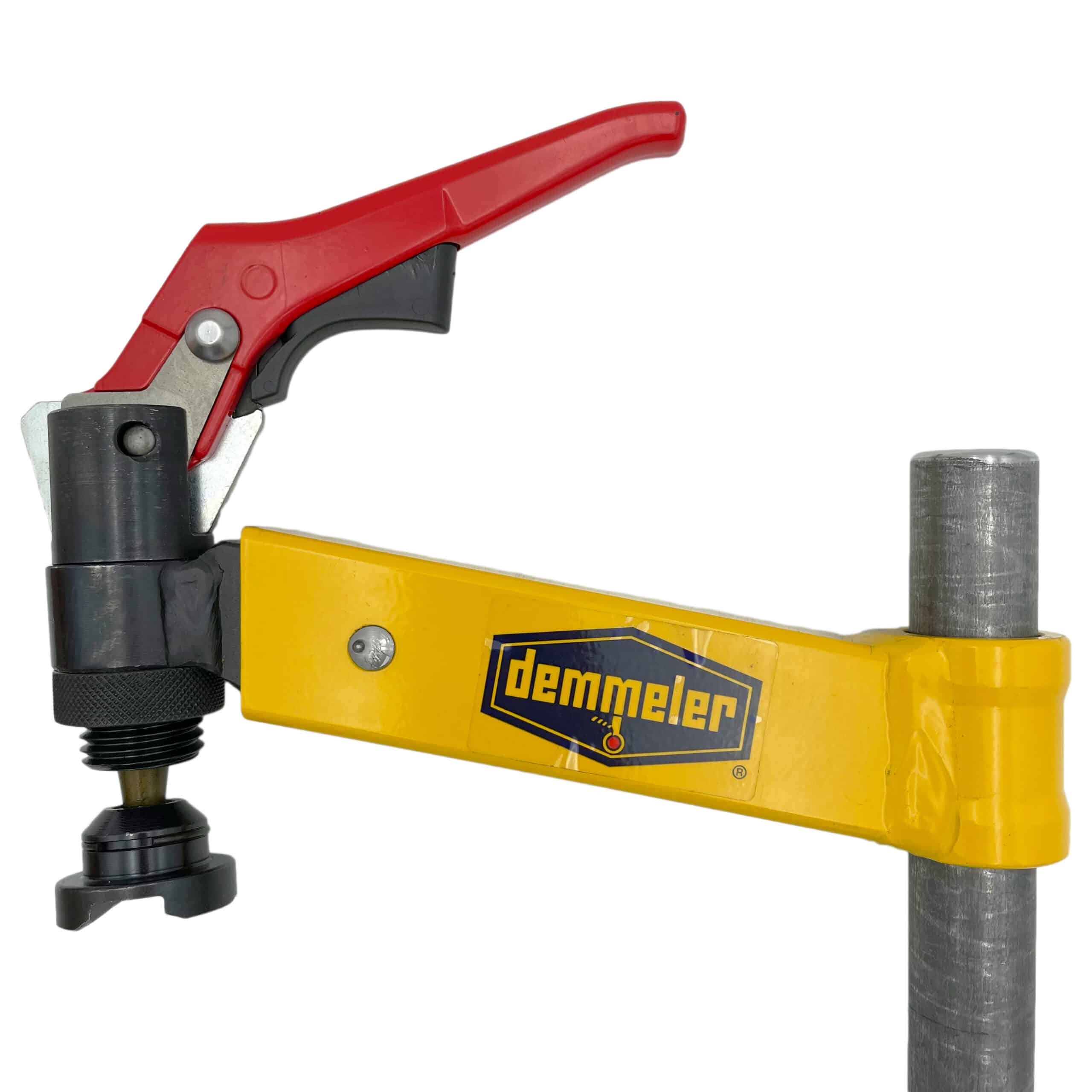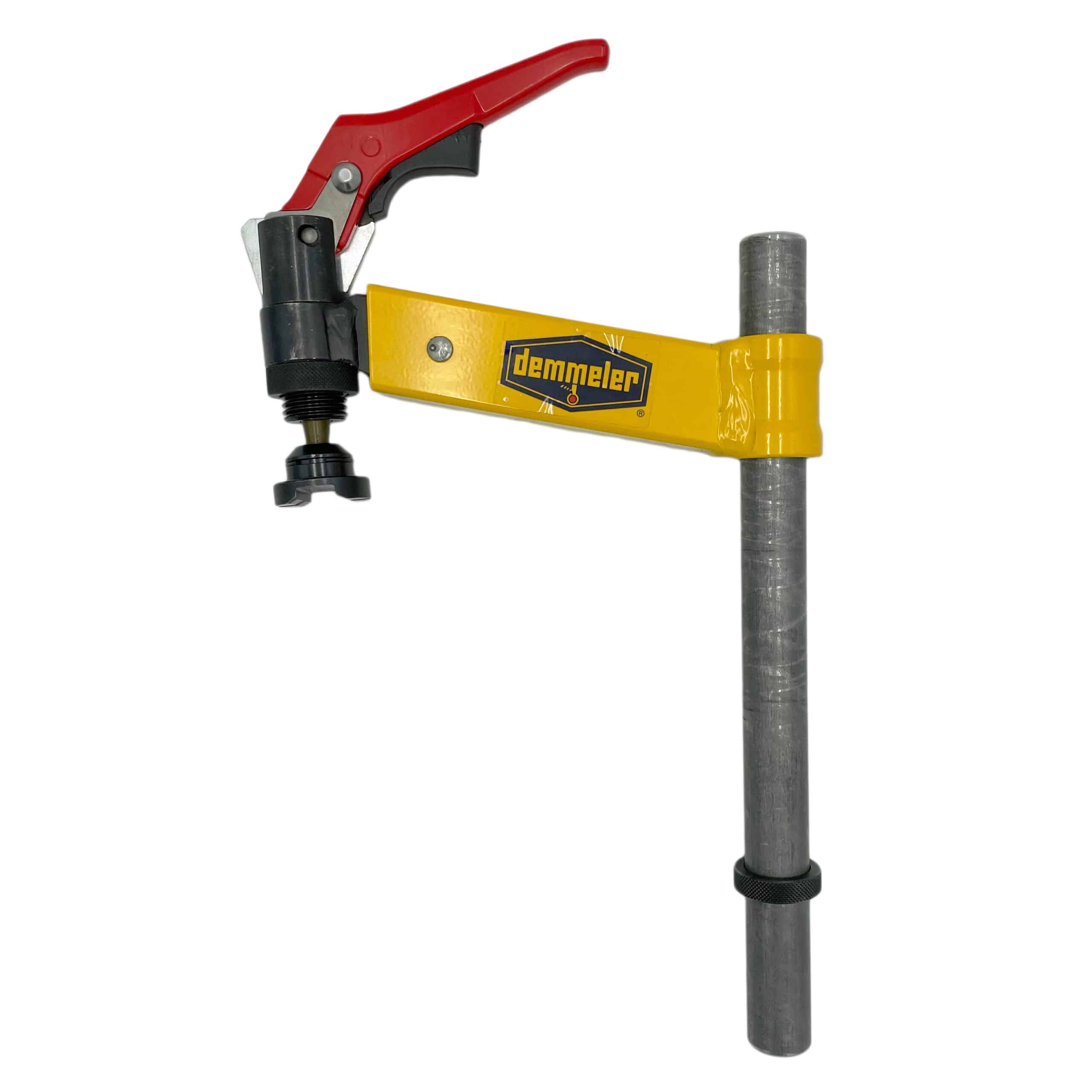 With a reach of 200mm, this clamp includes an interchangeable spindle and clamping pad, expanding its versatility. The interchangeable clamping tube supports multiple clamping heights, up to 950mm. The clamping pad can serve as a workpiece support, stop, or small V-block when mounted in any D28 system bore. The clamp’s standard height is 280mm with a 9mm clamping stroke and a stop ring for precise height adjustment.