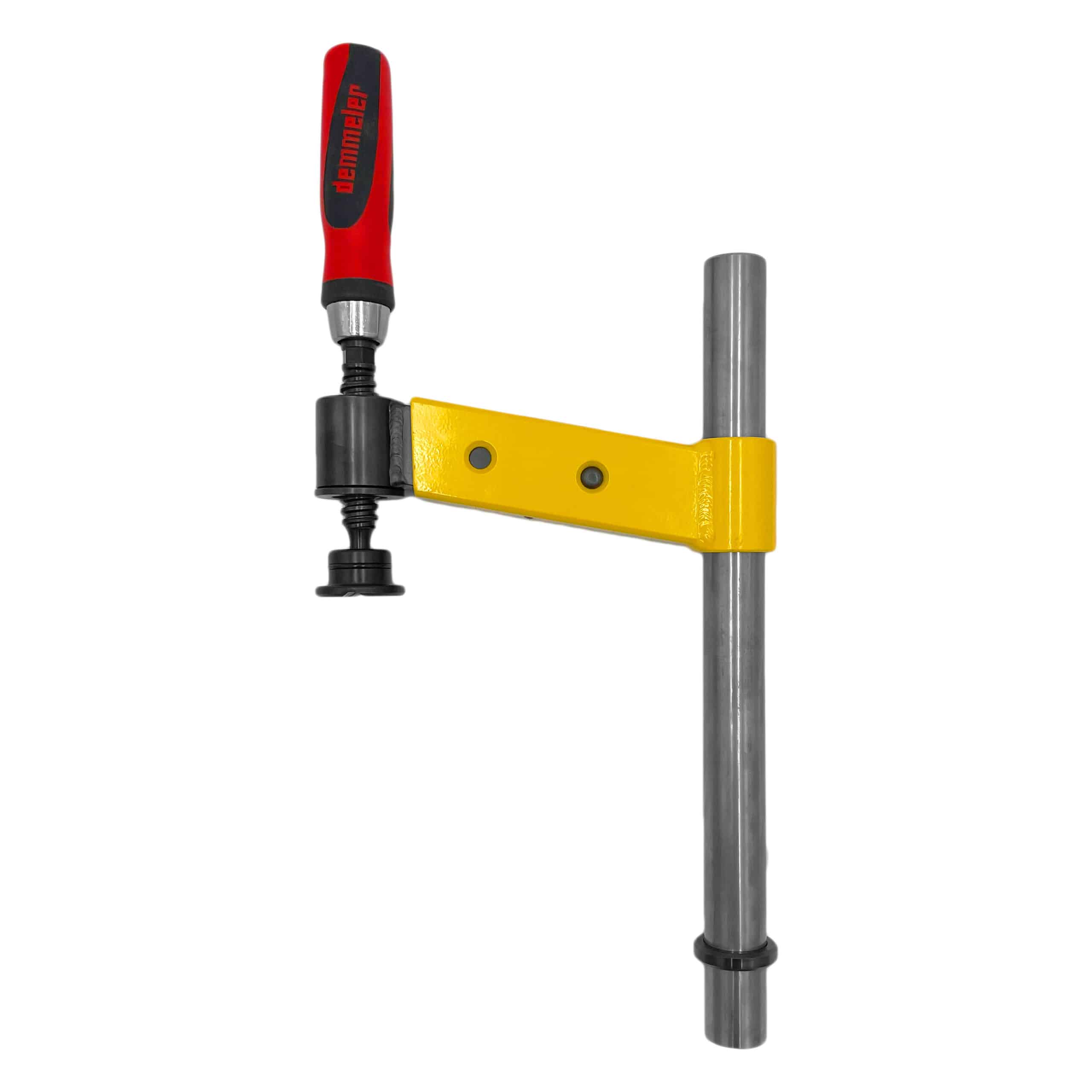 The interchangeable spindle and clamping pad expand the versatility of this clamp, while the interchangeable clamping tube allows for multiple clamping heights, up to 950mm. The clamping pad can also be used as a workpiece support, stop, or small V-block when fitted in any D28 system bore. The clamp’s standard height is 300mm with a 60mm clamping stroke and includes a stop ring for accurate height fixation.