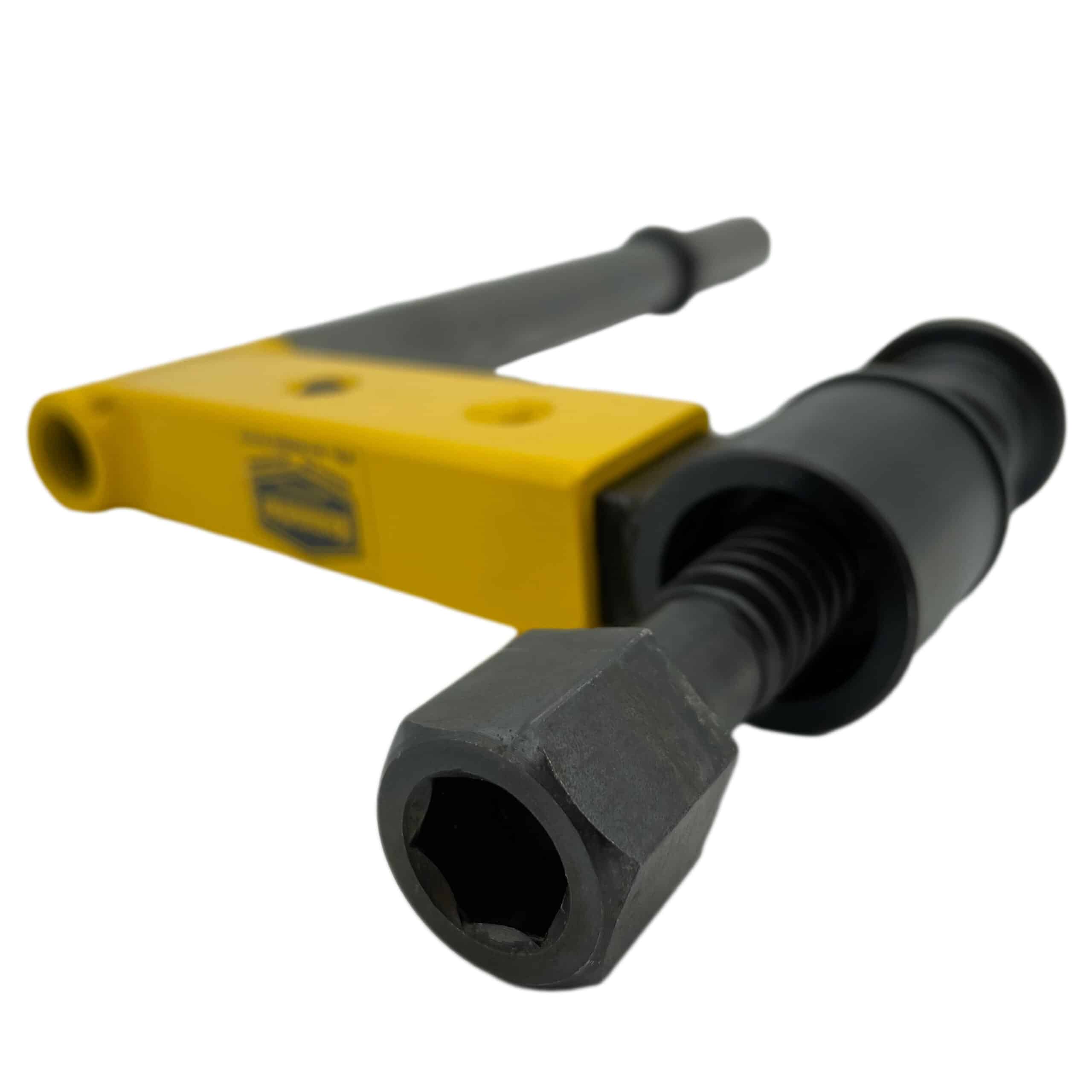 A stop ring is included for precise height fixation, while the hex screw on the spindle head allows for easy tightening with a 14mm Allen key. The hex spindle’s compact form factor makes it ideal for use in confined work areas.