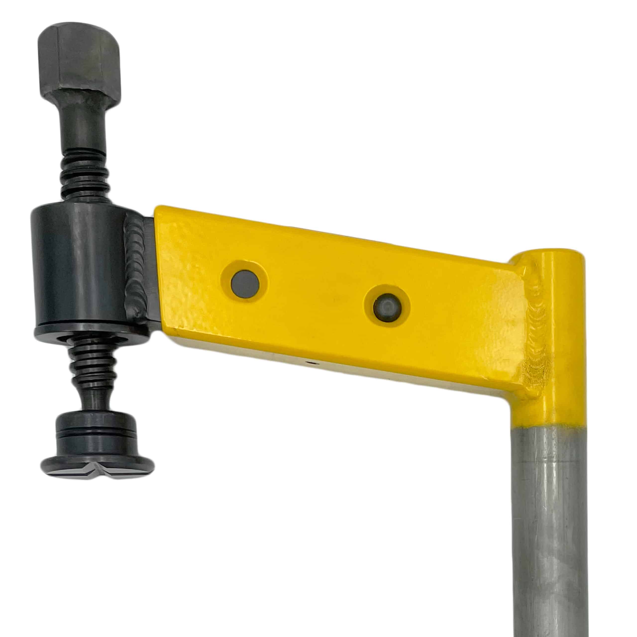 Spring-loaded to accommodate a reach of 150mm to 200mm, this clamp offers adaptable and reliable performance. The interchangeable spindle and clamping pad further extend the clamp’s application possibilities, allowing for easy customisation based on specific clamping needs.