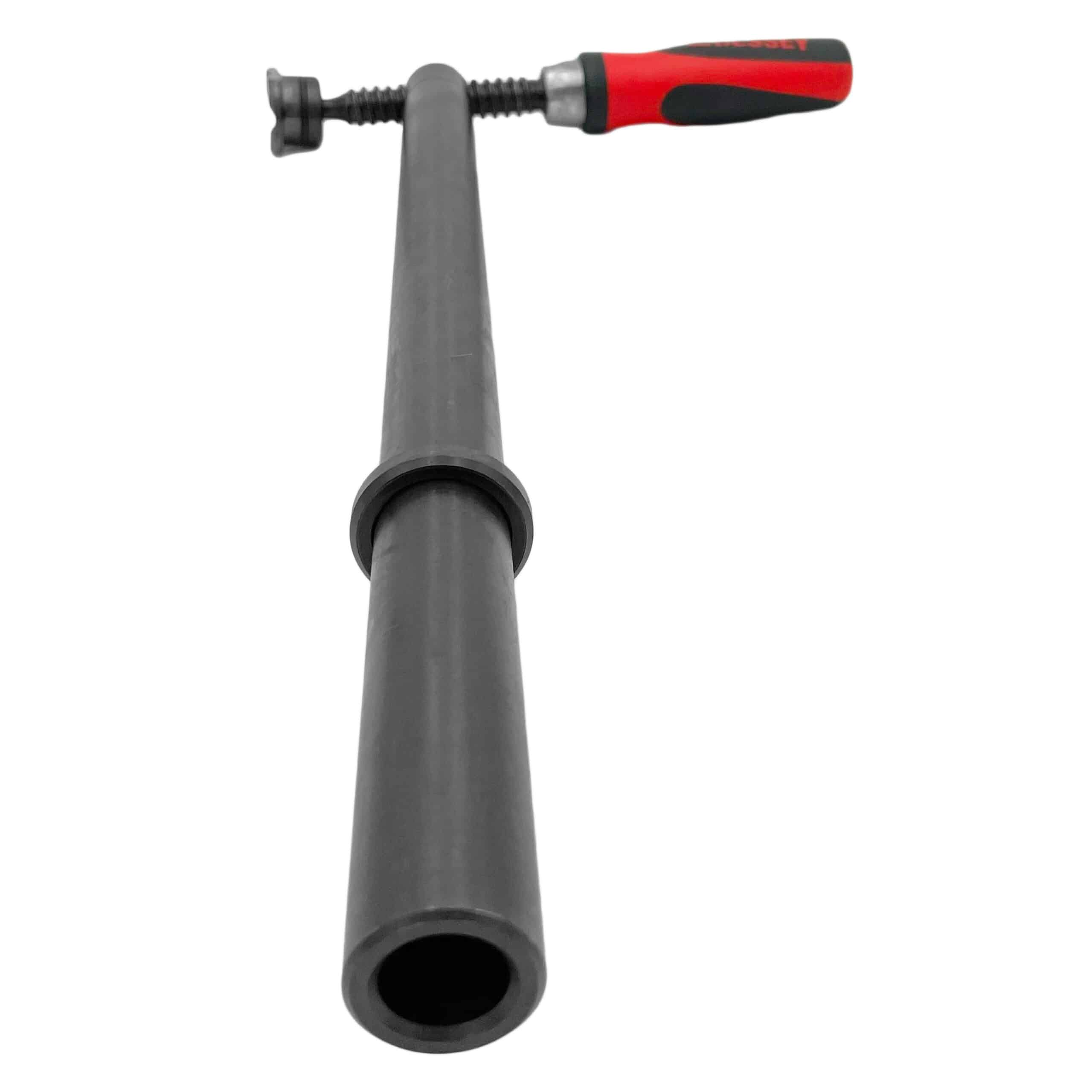 The clamp’s graphite-impregnated thread ensures maintenance-free durability, while the blackened clamping tube enhances overall strength and longevity. This clamp is ideal for horizontal clamping tasks, combining ease of use with robust performance.