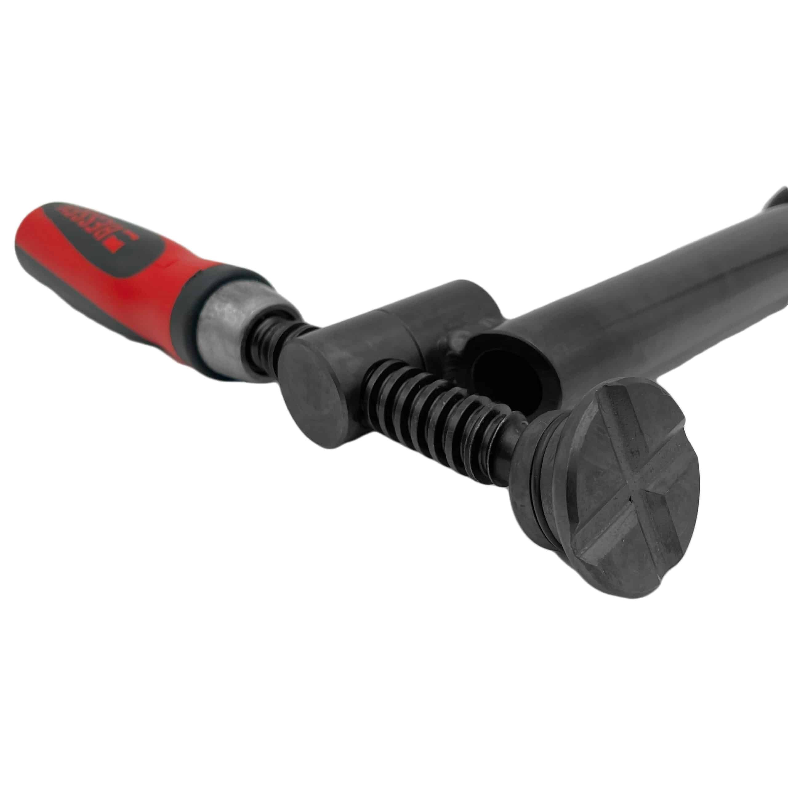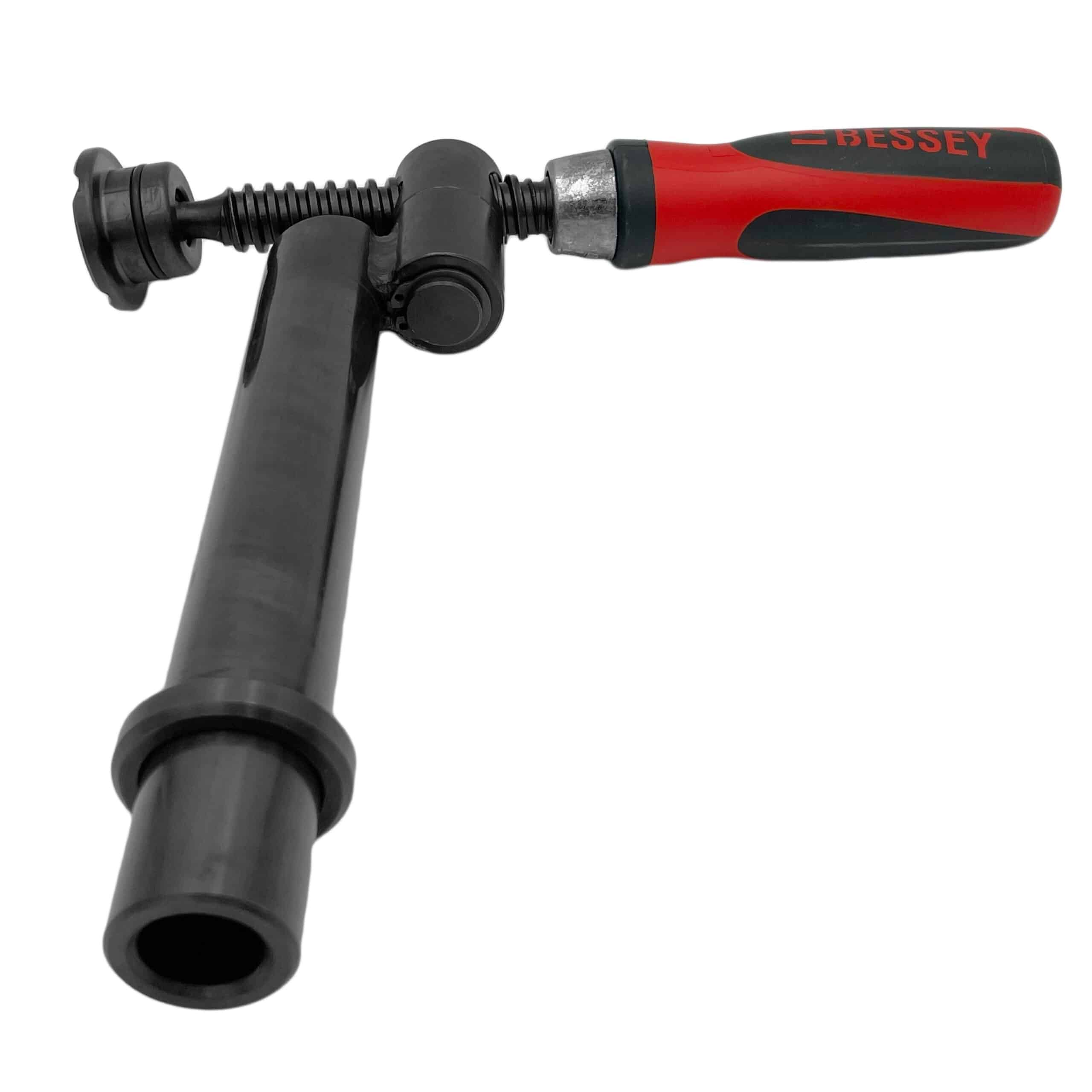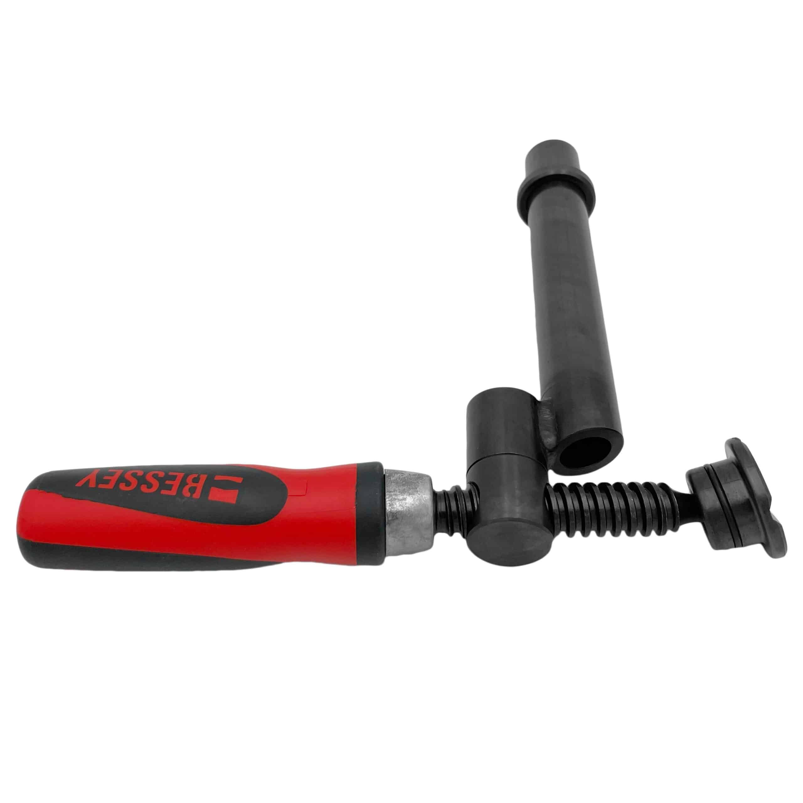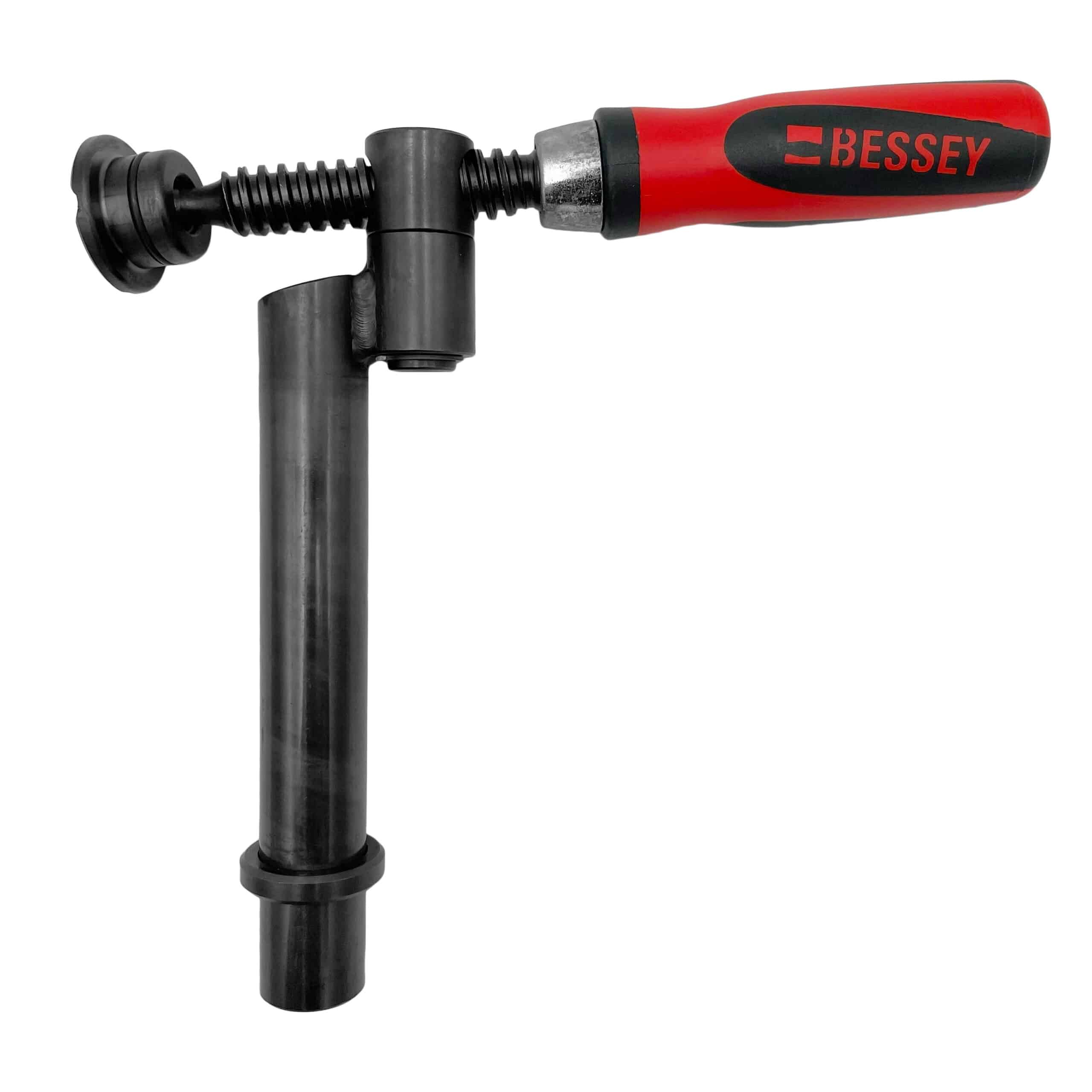 Additional features include the possibility for clamping bridge insertion, a graphite-impregnated thread for maintenance-free durability, and a blackened clamping tube for added strength. This clamp is ideal for applications requiring adaptable pressure direction and reliable clamping performance.