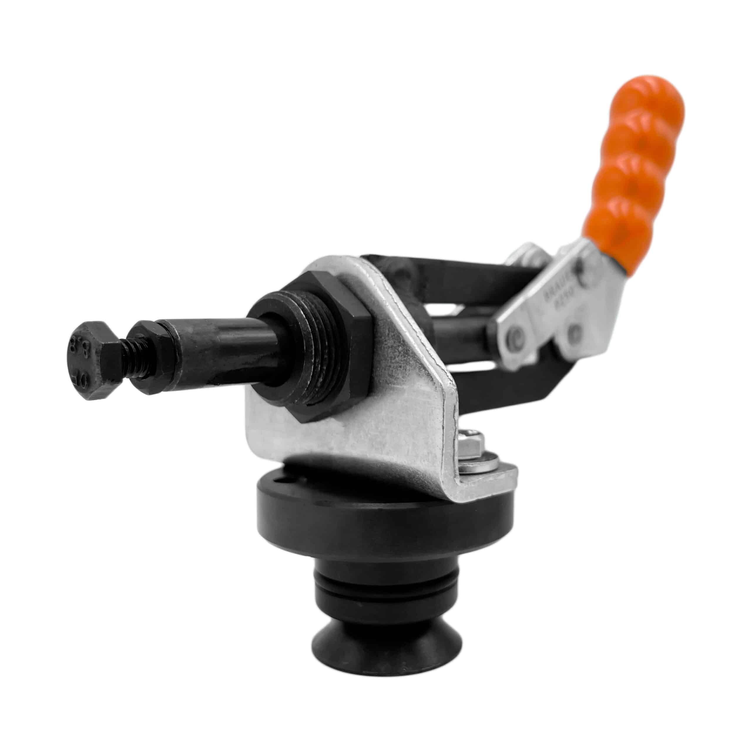 This versatile clamp can be directly mounted in any D28 system bore or used with universal stops for continuous adjustability. The ergonomic, slip-resistant handle enhances ease of use, providing comfort and control during operation. Perfect for applications requiring quick, adjustable, and precise clamping.