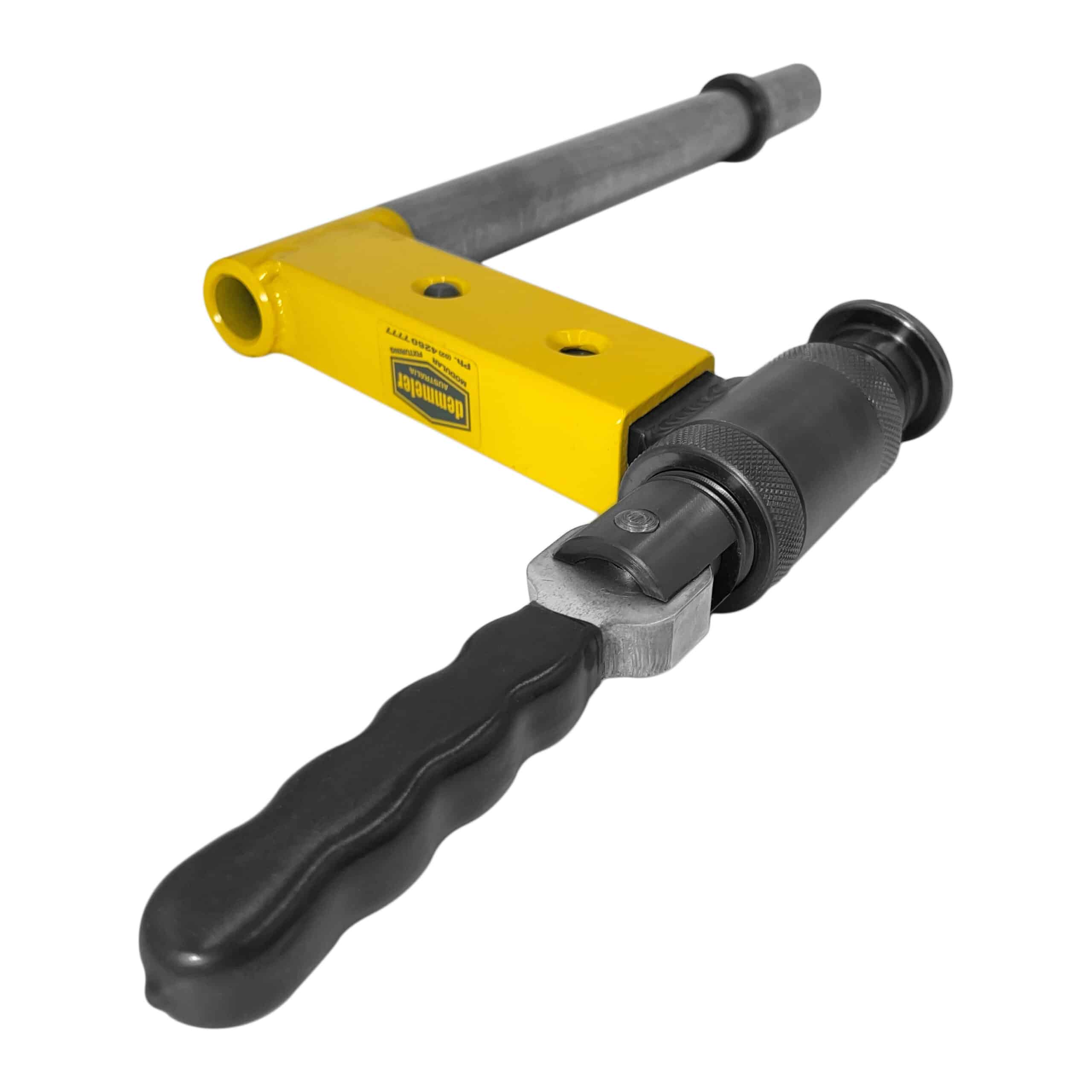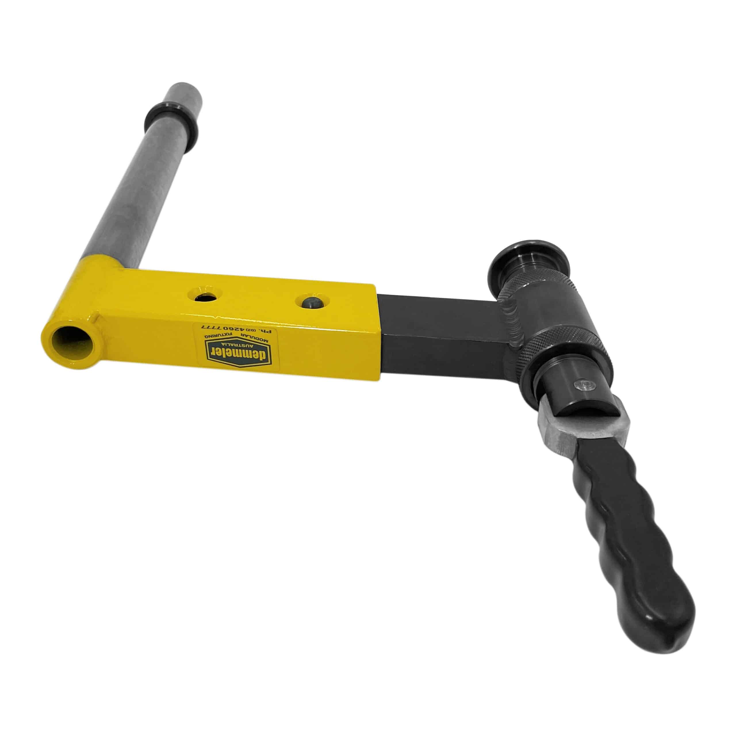 The sliding tee handle provides additional torque during tightening, enhancing ease of use. The thread bushing is compatible with all D28 system bores, making it a versatile choice for a variety of setups. The fixed design of this clamp ensures dependable clamping in demanding environments, delivering both speed and precision.