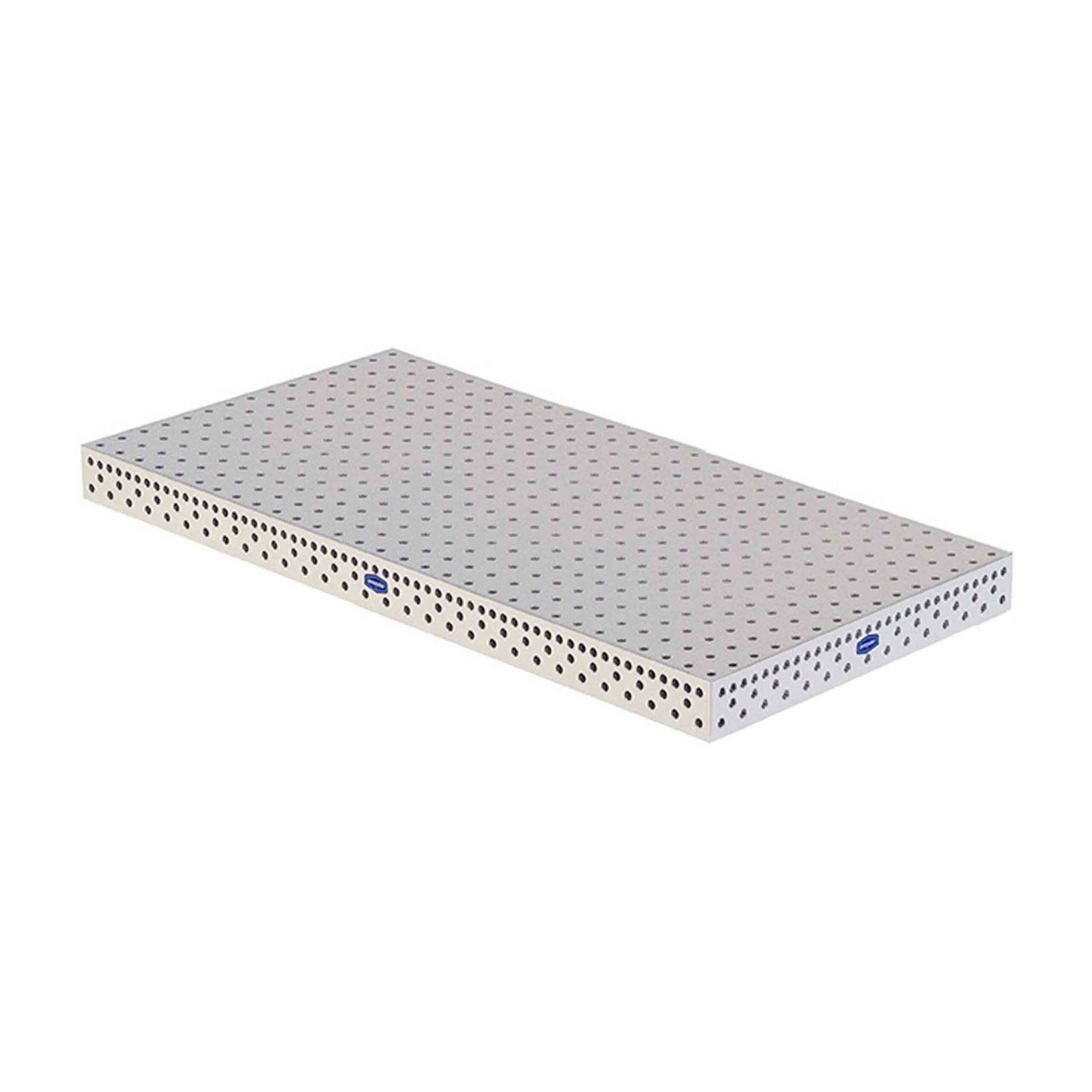 The Demmeler ProfiEcoLine 3D Worktable – 3m x 1.5m is designed for precision and versatility, offering an advanced worktop with D28 system bores in a 100mm x 100mm grid for optimal workpiece clamping. Its 3-hole drilling pattern in the side plates nearly doubles the expansion and clamping options, with D28 system bores at a 50mm grip in the top row and additional 100mm grid in the middle and bottom rows.