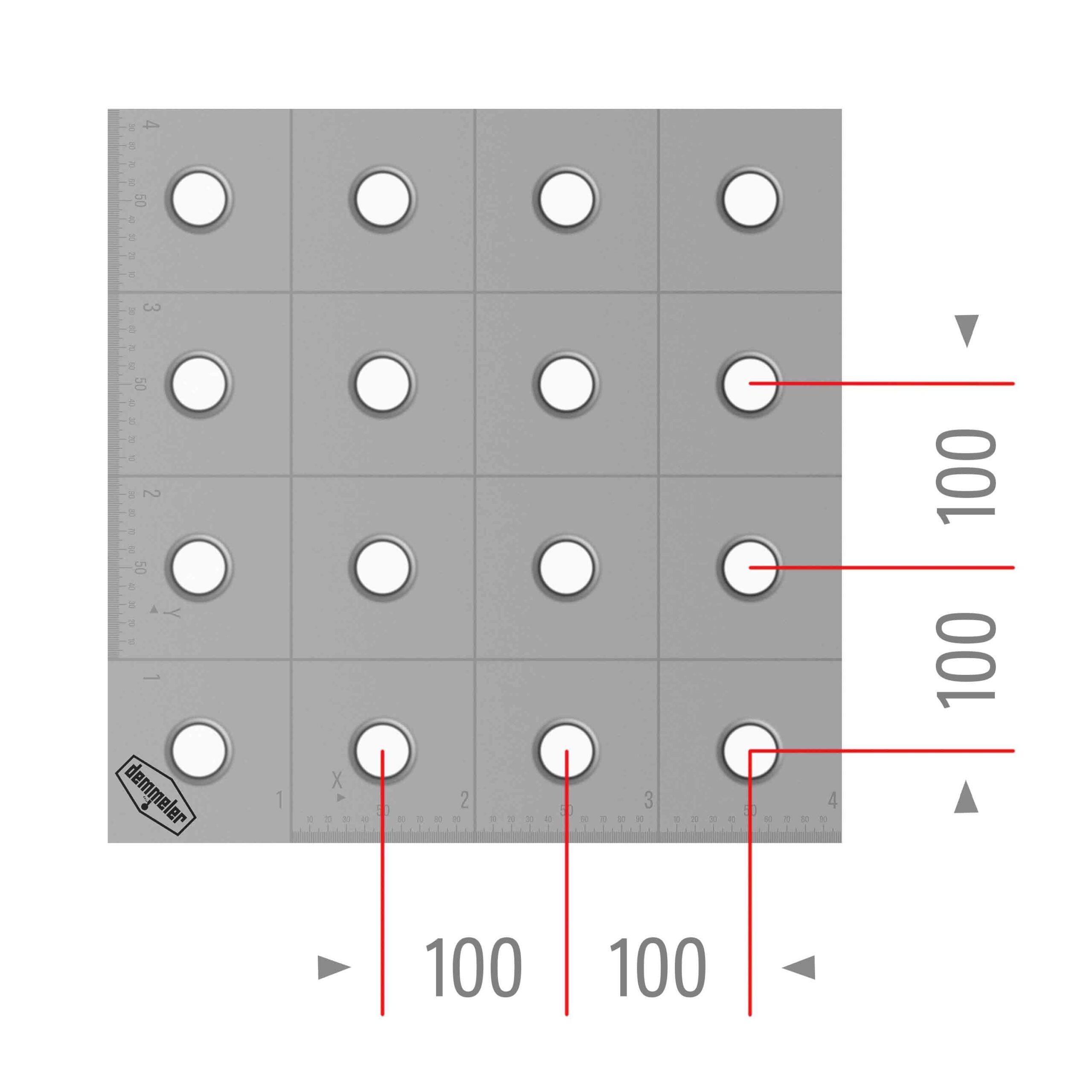 The ProfiEcoLine offers continuous gridlines in the X and Y directions, spaced 100mm apart, along with precision scaling and coordinate marking of bores for millimetre-accurate setups.