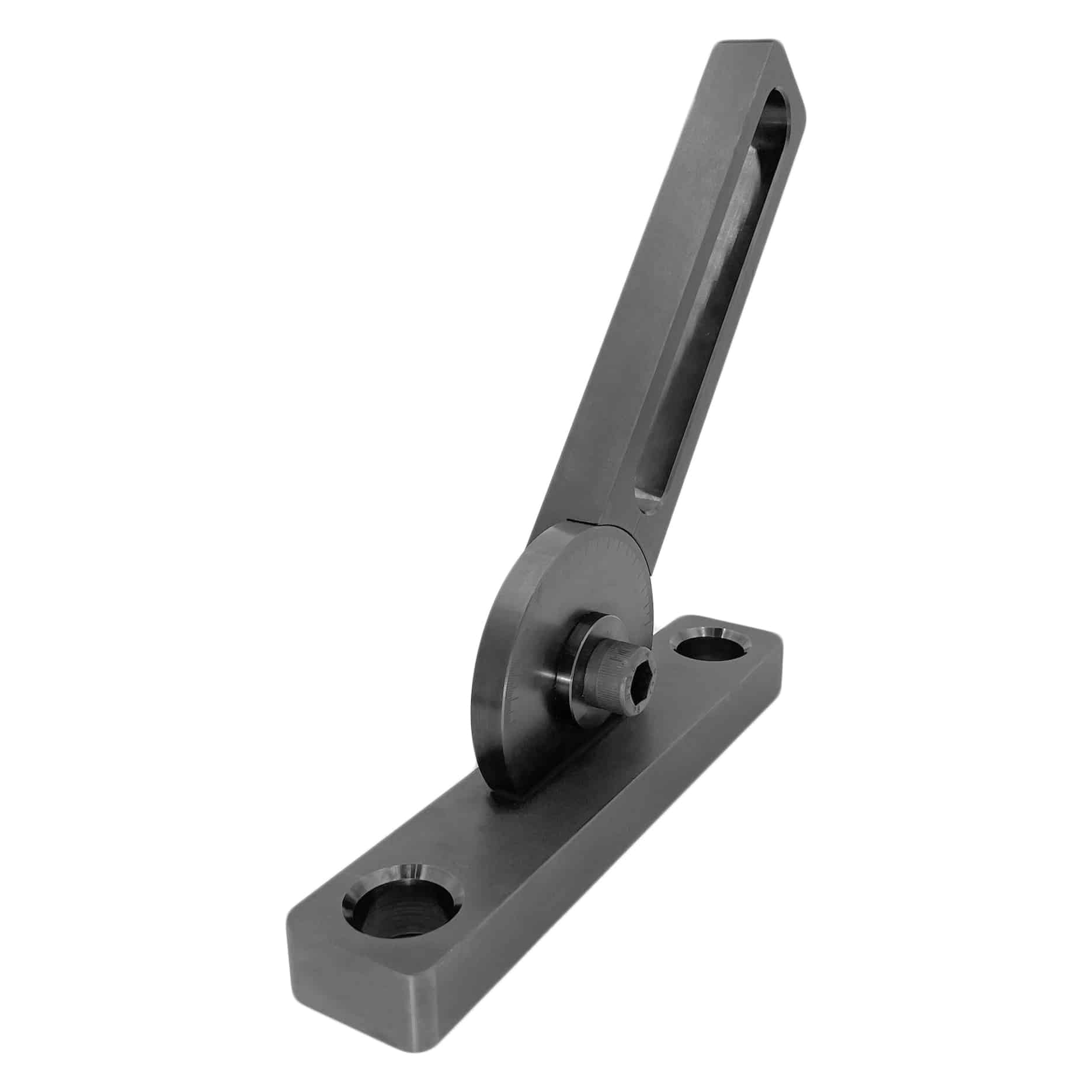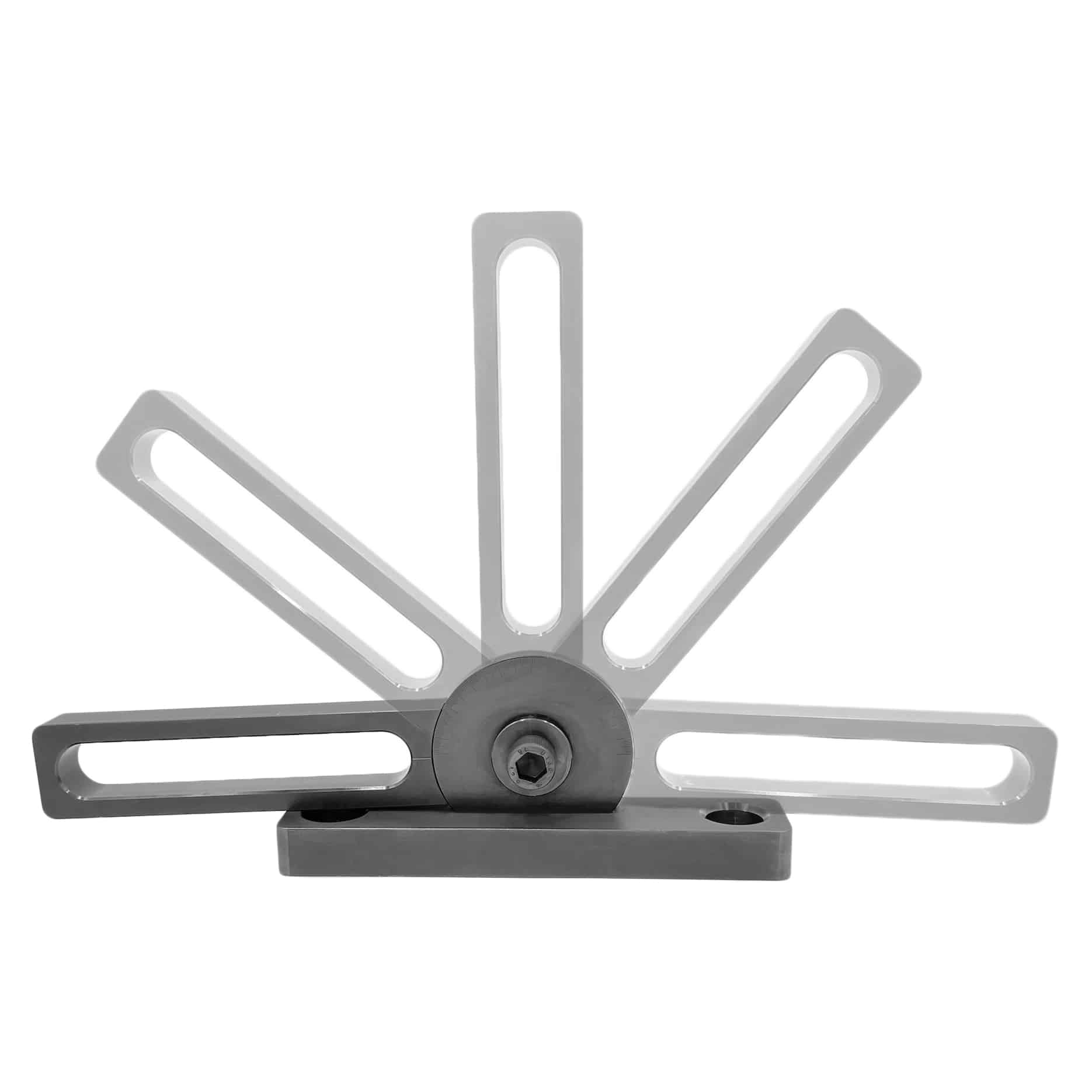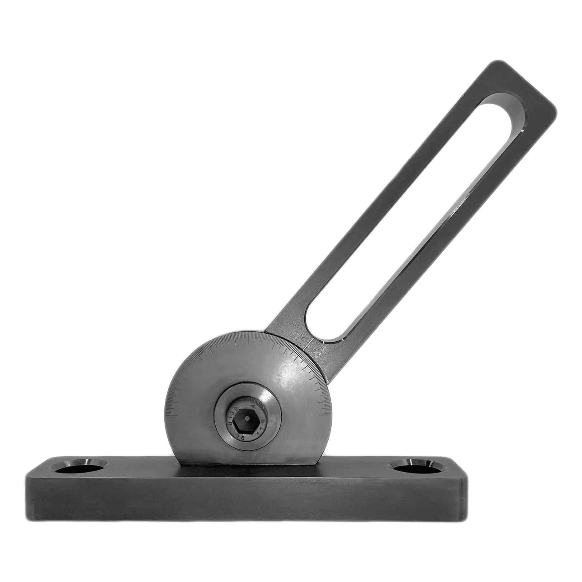 The Protractor – Universal offers a continuously adjustable range between 0° and 180°, allowing for precise angle settings. Its graduated scale ensures accurate adjustments for your projects. A hex screw facilitates fine-tuning of angles using a 14mm Allen key. The blackened finish provides added durability, making this protractor a reliable tool for various applications.