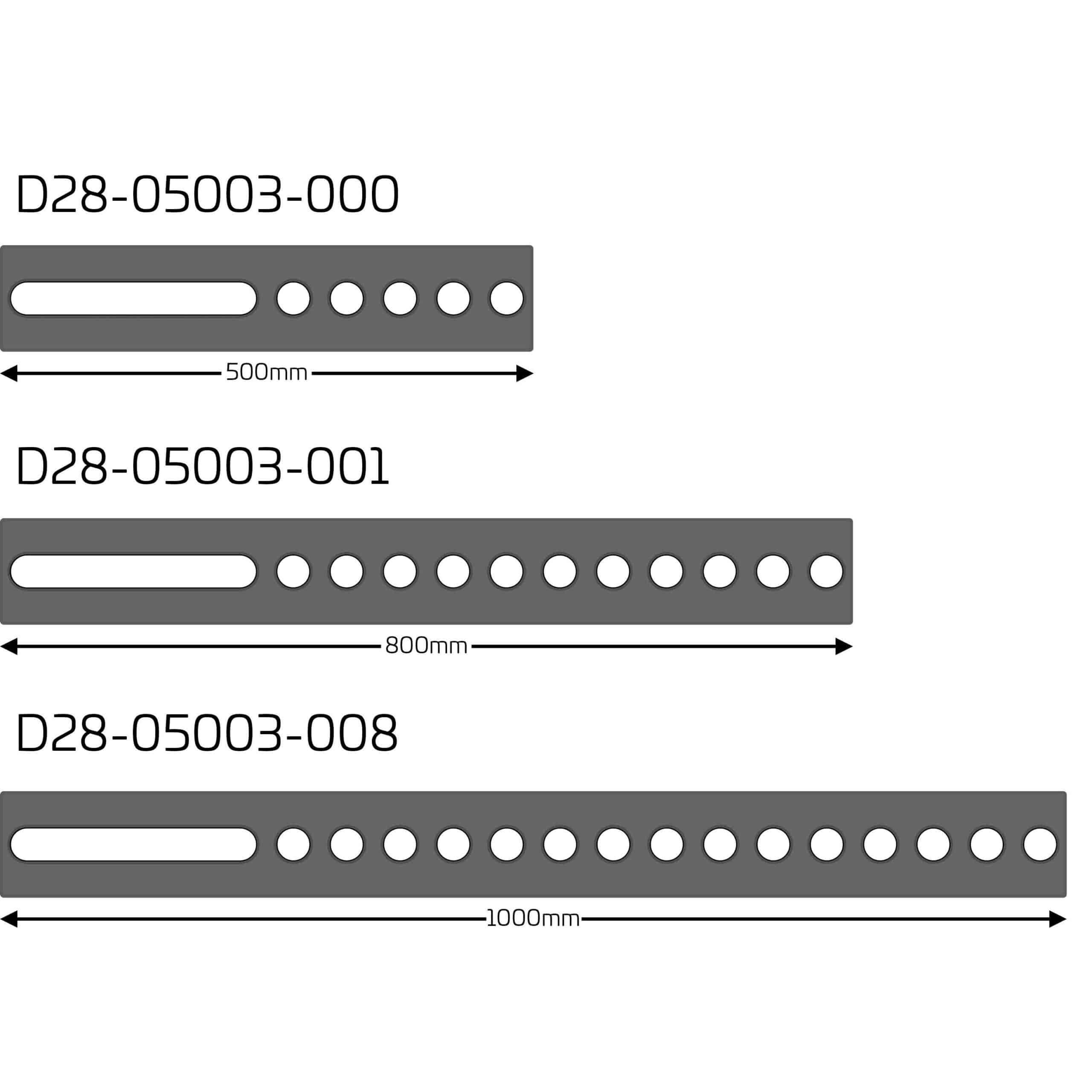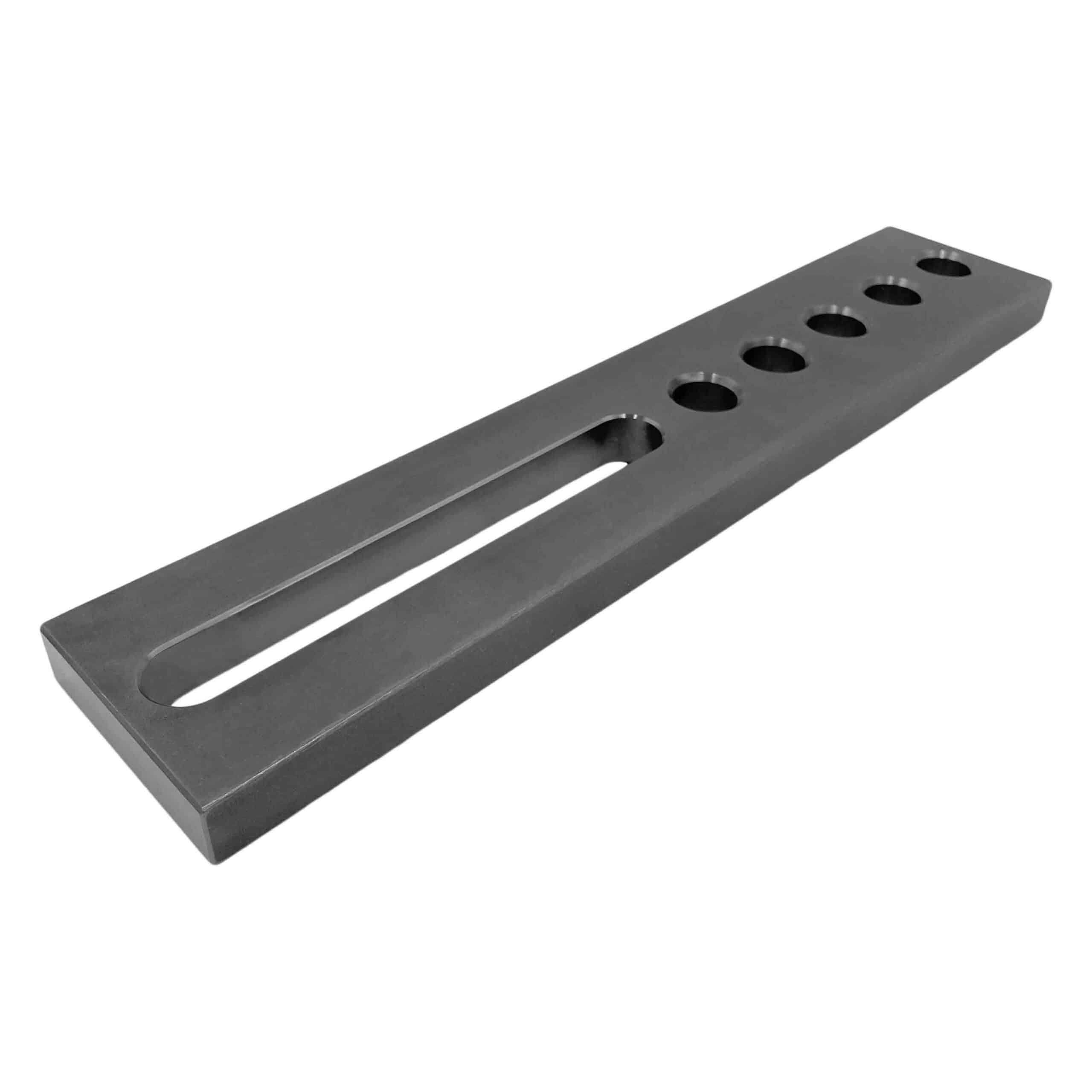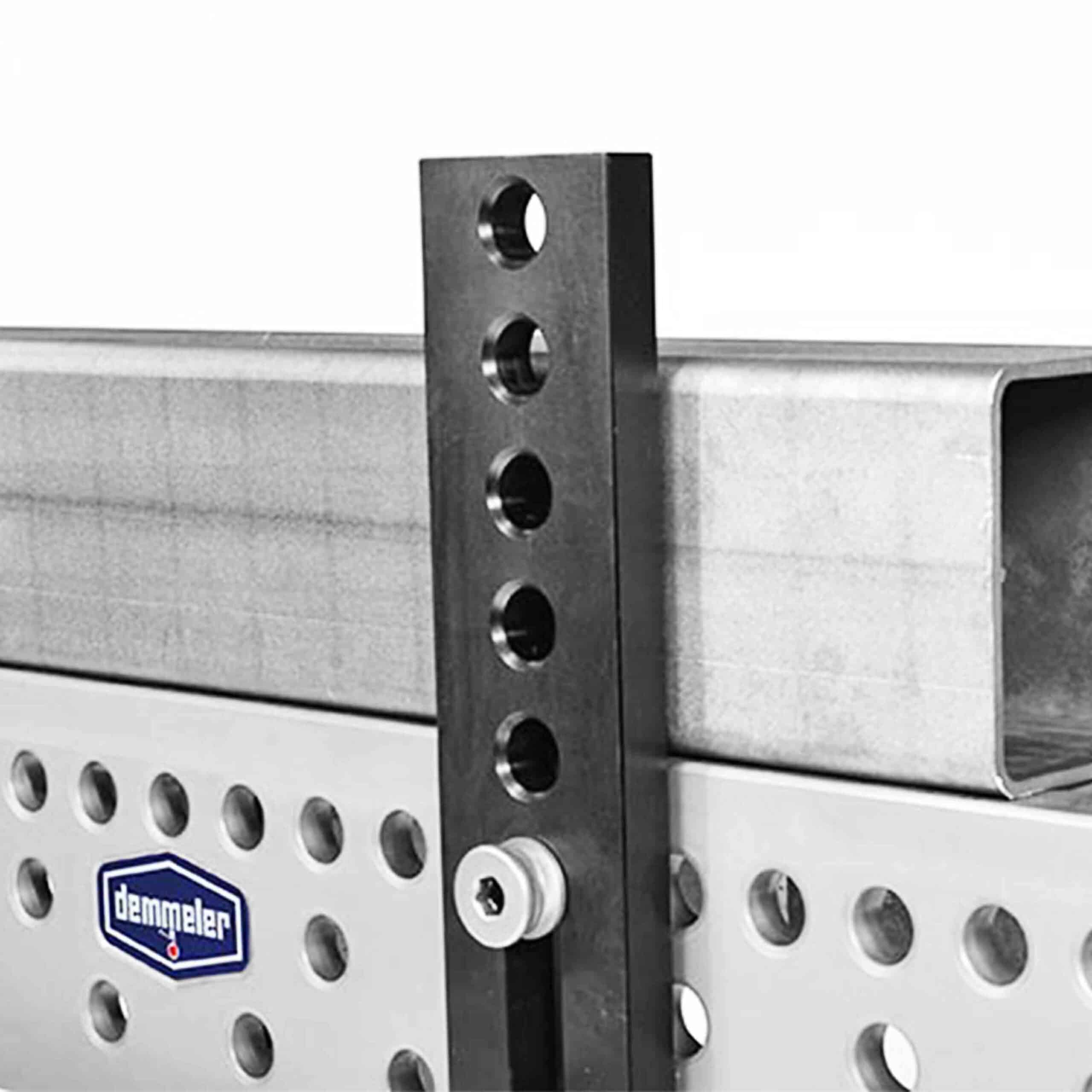 The Hardened Stop Bar is designed for handling larger components and covering longer distances with ease. It can be either fixed or continuously adjusted on 3D worktables and system components, providing flexibility in your setups.