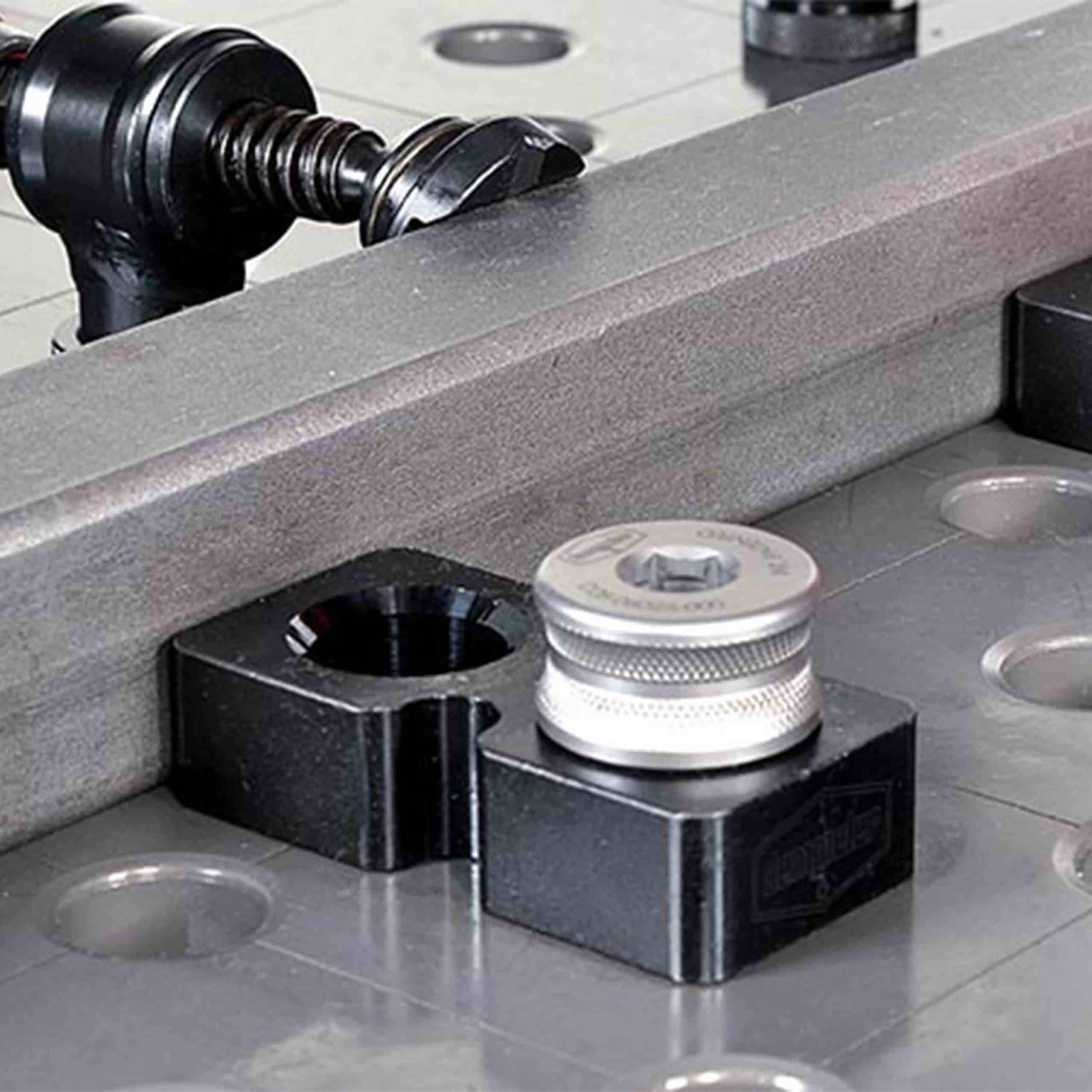 This stop creates two location points with just one unit, and its milled notching enables precise corner connections. The blackened finish provides added durability, making it a dependable choice for accurate positioning in tight spaces.