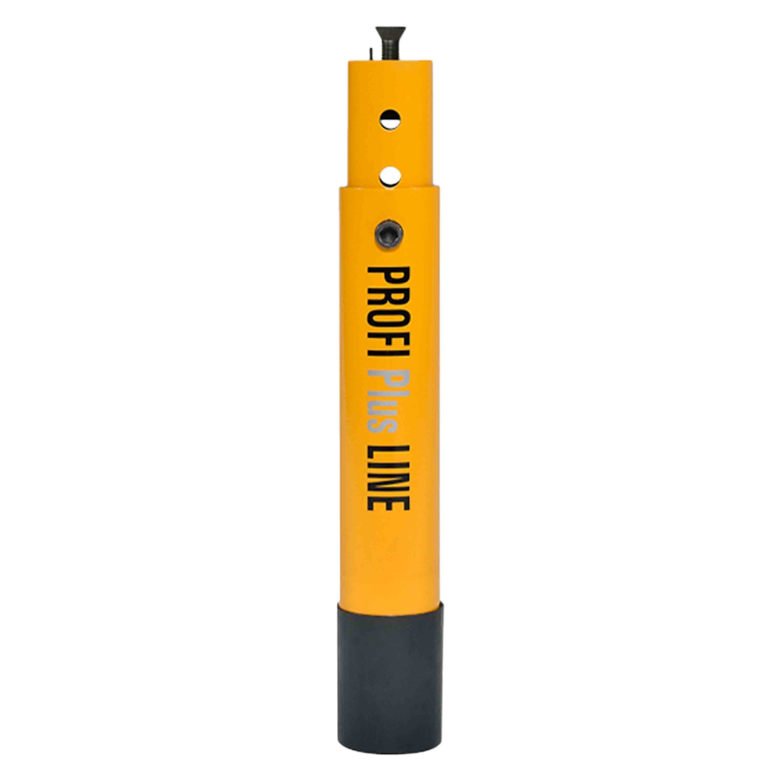 The Demmeler Telescoping Leg is designed for simple and stable mounting, offering flexible height adjustments for your worktable. It features pivoting feet that can be finely adjusted by ± 30 mm, ensuring precise leveling. The sturdy M30 threaded spindle provides robust support, while the foot sleeve protects the spindle from dirt and prevents cable-hose assembly pinching. With a telescopic adjustment range of 350 mm in 50 mm increments, this leg accommodates various height requirements. It includes a countersunk M24 x 60 mounting screw for secure attachment and is powder-coated for enhanced durability, making it a reliable choice for any workspace.
