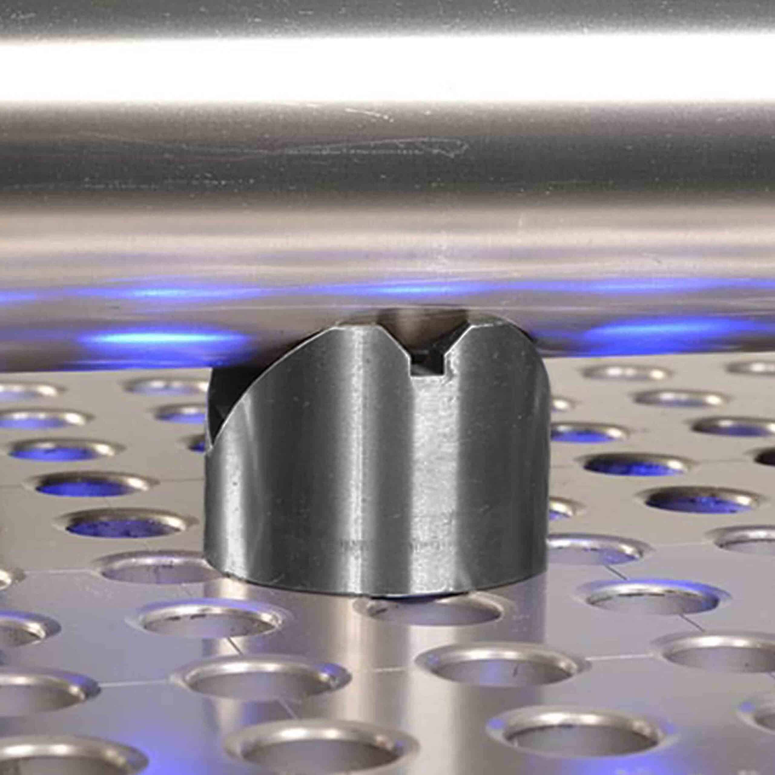 The V Block with Arbor features a threaded support tower for enhanced stability and precision. It holds workpieces up to a maximum diameter of 100mm and is suitable for rectangular tubes as well. The double V-block design expands its application possibilities, providing versatile support and positioning. Blackened for added durability, this V Block ensures long-lasting performance and reliability in a range of demanding tasks.
